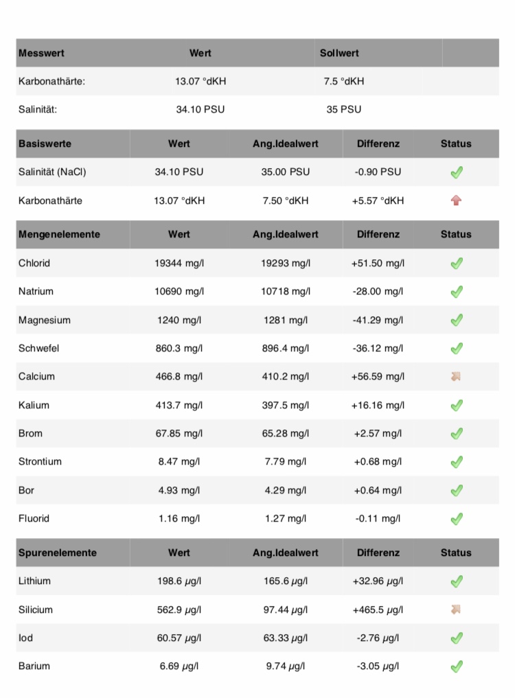 Hallo zusammen, anbei eine aktuelle Oceamo Analyse. Nach dem Ergebnis habe ich mit dem zu dosieren von Jod angefangen. Magnesium gleiche ich noch aus. Zeitgleich ist mir ein Fauxpas aufgefallen. Die BASIC #3 Flasche war viel schneller aufgebraucht :oops: . Hier habe ich versehentlich über Wochen die...