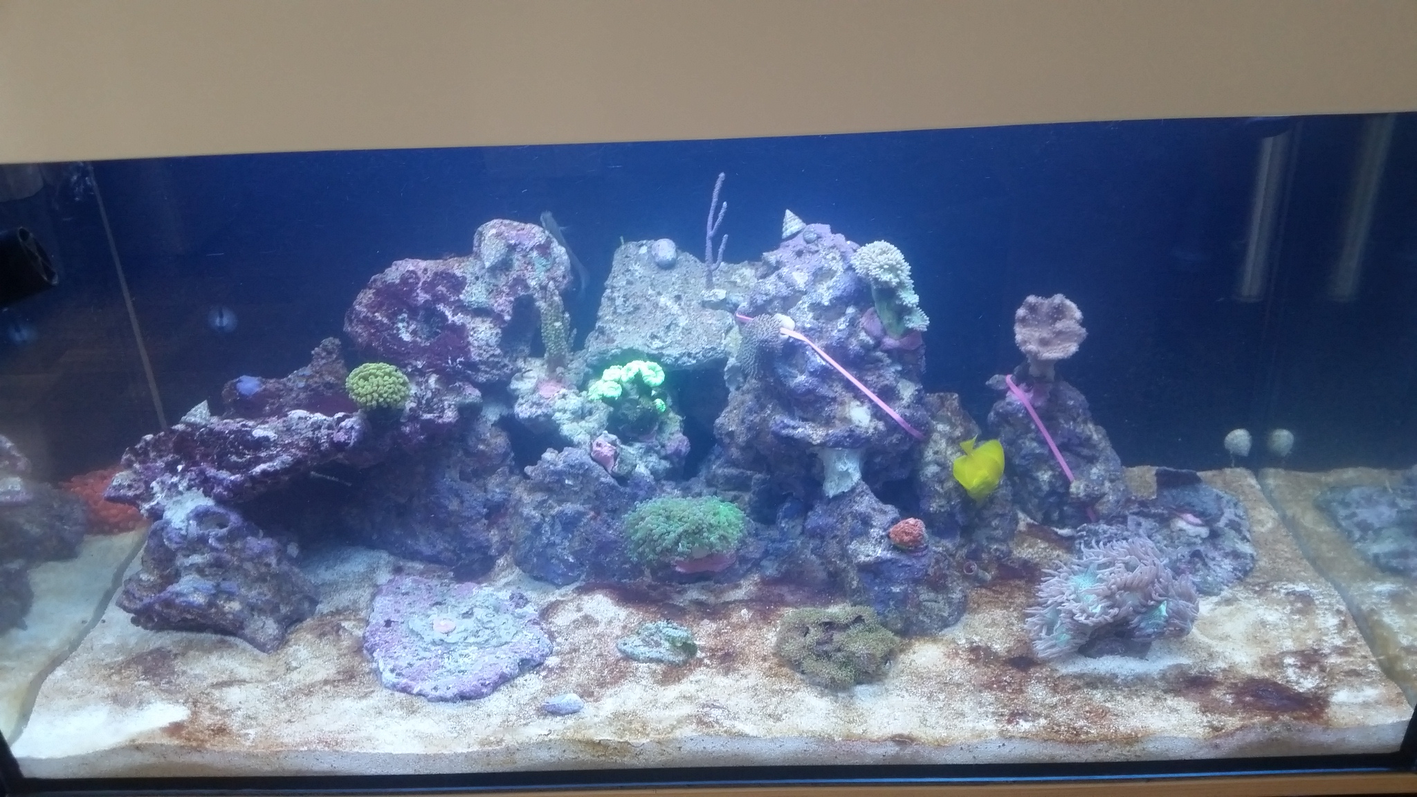 20151008_160955.jpg Hallo , Wollt mal fragen ich habe schon wieder rot braunen Belag auf dem bodengrund. Der sich auch auf den Steinen absetzt mit faden. Korallen stehen alle super. Liegt es vielleicht an der Anemone die in der pumpe zerkleinert wurde. Habe gleich einen 15% Ww gemacht. Meine Werte ...
