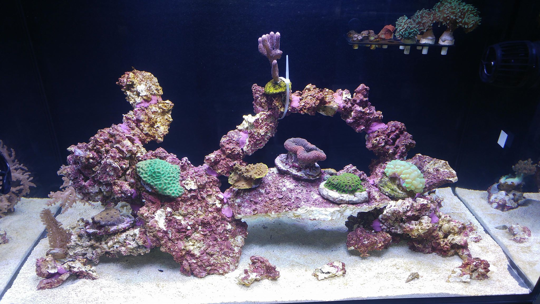 Liebe Leute, ich brauche mit mal euren Rat! Mein Riff läuft jetzt seit 9 Monaten mit Sangokai. Beleuchtung ist Philips Coral Care mit 11h Beleuchtung, 90% Intensität und in der Mittagsspitze 90 warm/60 cold (ansonsten bis 30 Minuten vor Lichtaus eher weniger cold). Ich bin mittlerweile ganz zufriede...