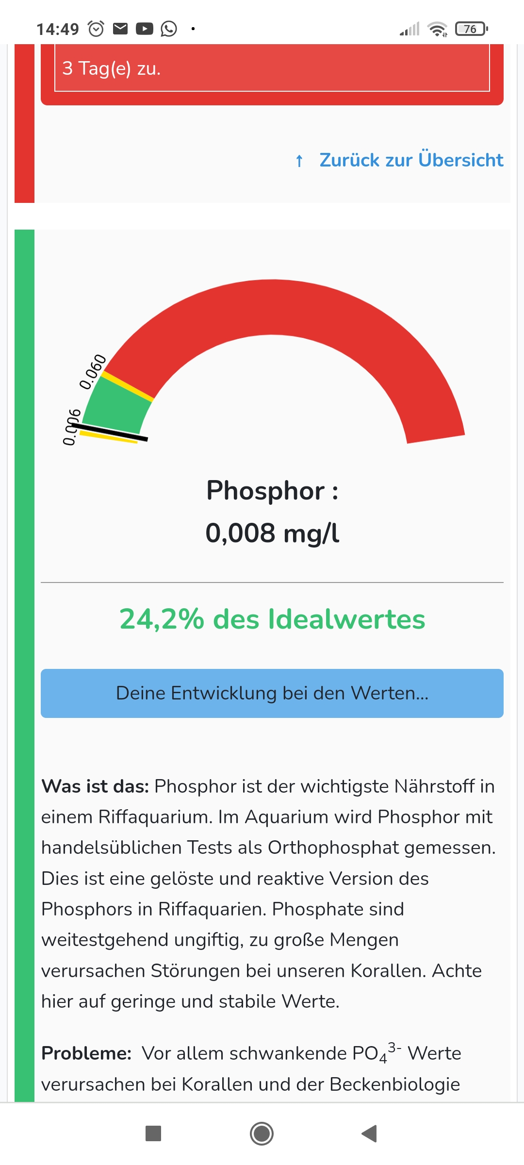 Ich hatte zuviel Licht, Nährstoffe (NO3 und PO4) waren immer kaum nachweisbar (ja, nicht schlimm, solange trotzdem vorhanden), auch 2 ICPs haben mich da bestätigt.