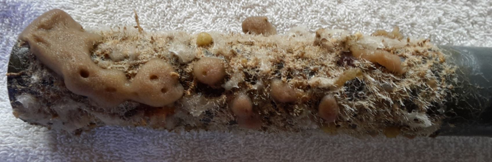 Hallo zusammen, es ist vollbracht. Meine Rohre sind wieder sauber. Innen waren so gut wie keine Verkrustungen oder Schwämme. Das hat mich verwundert; dachte da an mehr. Und das nach fünf Jahren in Betrieb. Dafür waren sie außen, wo sie im Wasser waren, ziemlich bewachsen. siehe Bild. Hatte die zwar die letzten Jahre immer so gut wie möglich davon befreit, aber es ist anders wenn man es komplett zurück baut und reinigen kann.