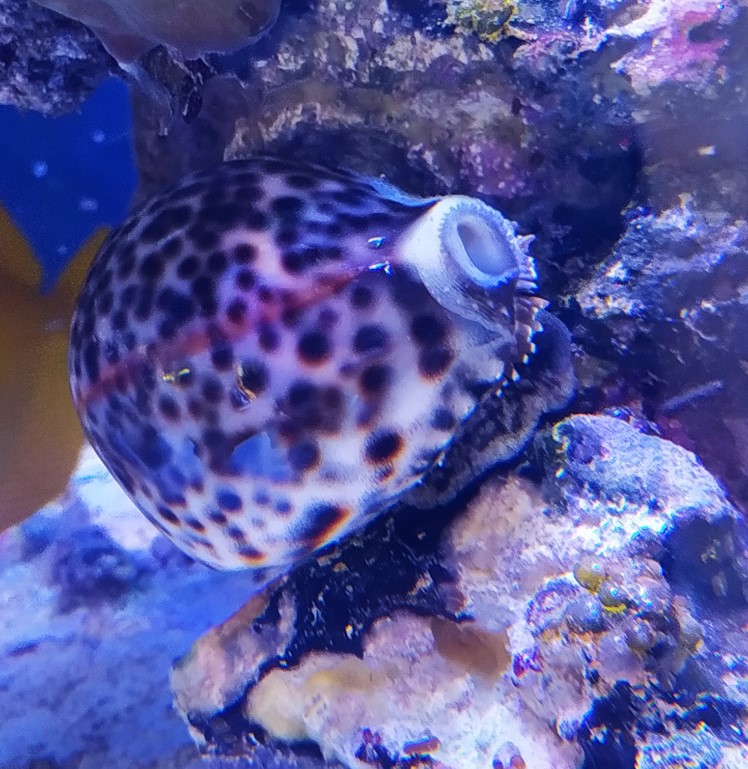 Ich habe mir jetzt die Cypraea tigris gekauft. Und die sitzt tatsächlich an den Schwämmen und frisst sie. :D