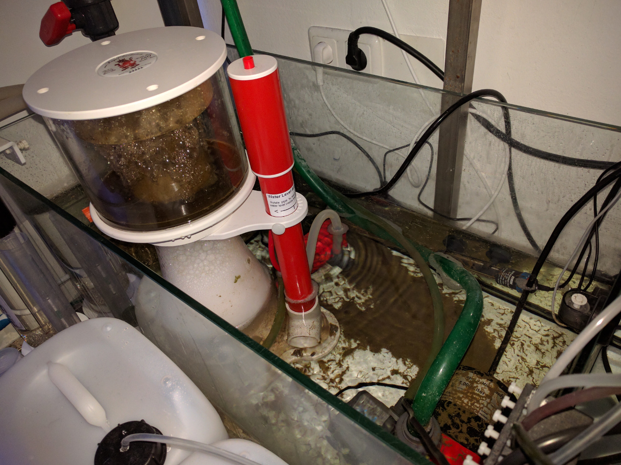 Die Durchflussmenge des Technikbecken könnte ich mir noch mal anschauen. Derzeit läuft meine Royal Exclusive Speedy 3 Red Dragon Pumpe auf 40, von maximal 50, Watt. So recht viel mehr Spielraum nach oben hab ich da leider nicht mehr, kann es aber mal ausprobieren. Mein Abschäumer (Royal Exclusive Double Cone 180 mit RD3 Speedy) läuft auf ca. 25 glaub ich. Oder kurz gesagt: ich wüsste gerade nicht wo ich da noch was optimieren könnte leider.
