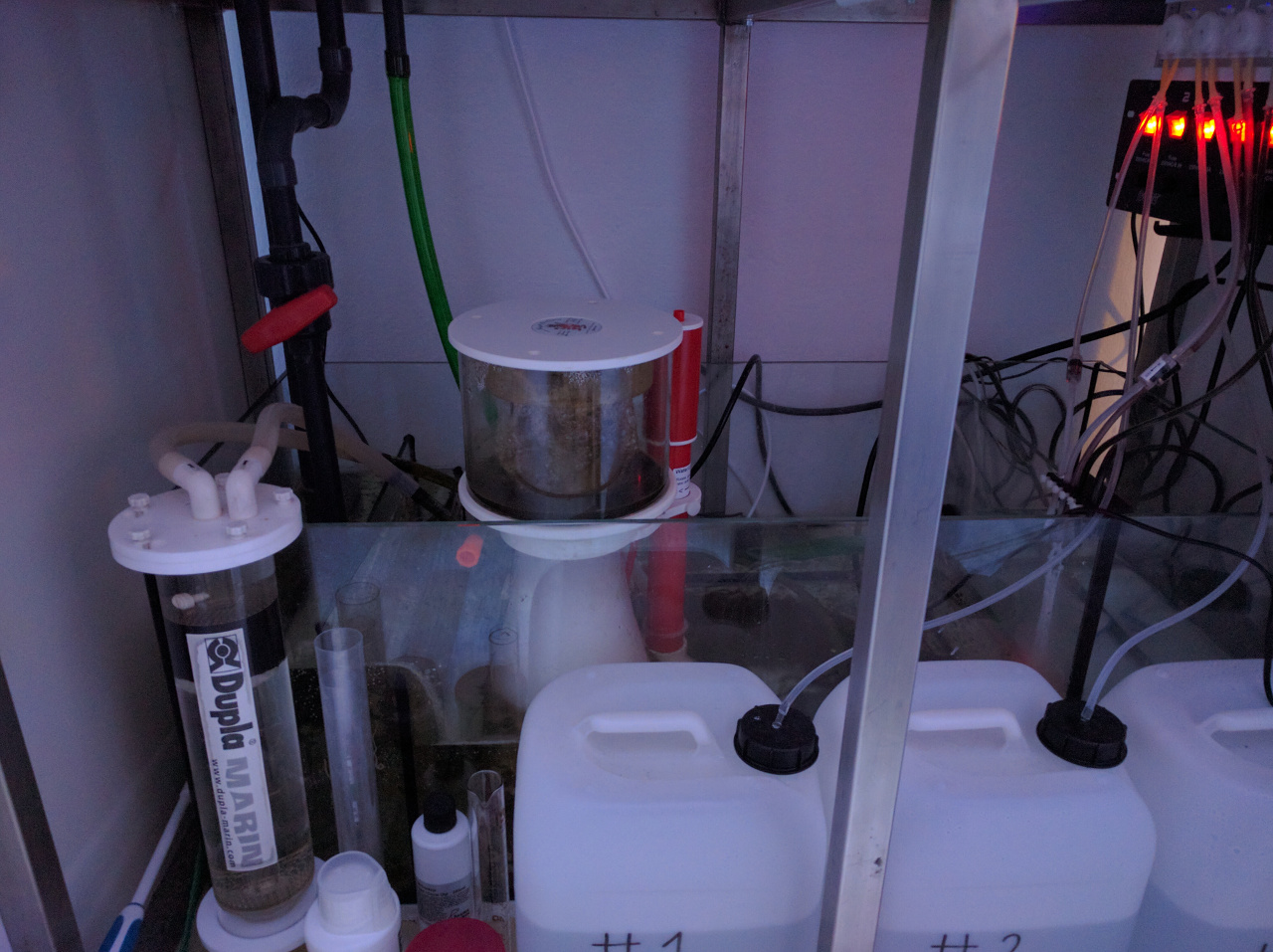 Anbei noch ein paar Fotos von meinem Technikbecken. Mischbettharz hinter Osmose ist angeschlossen. Zusätzlich lasse ich auch immer das Osmosewasser im Labor mit analysieren. Ist eigentlich immer sauber.