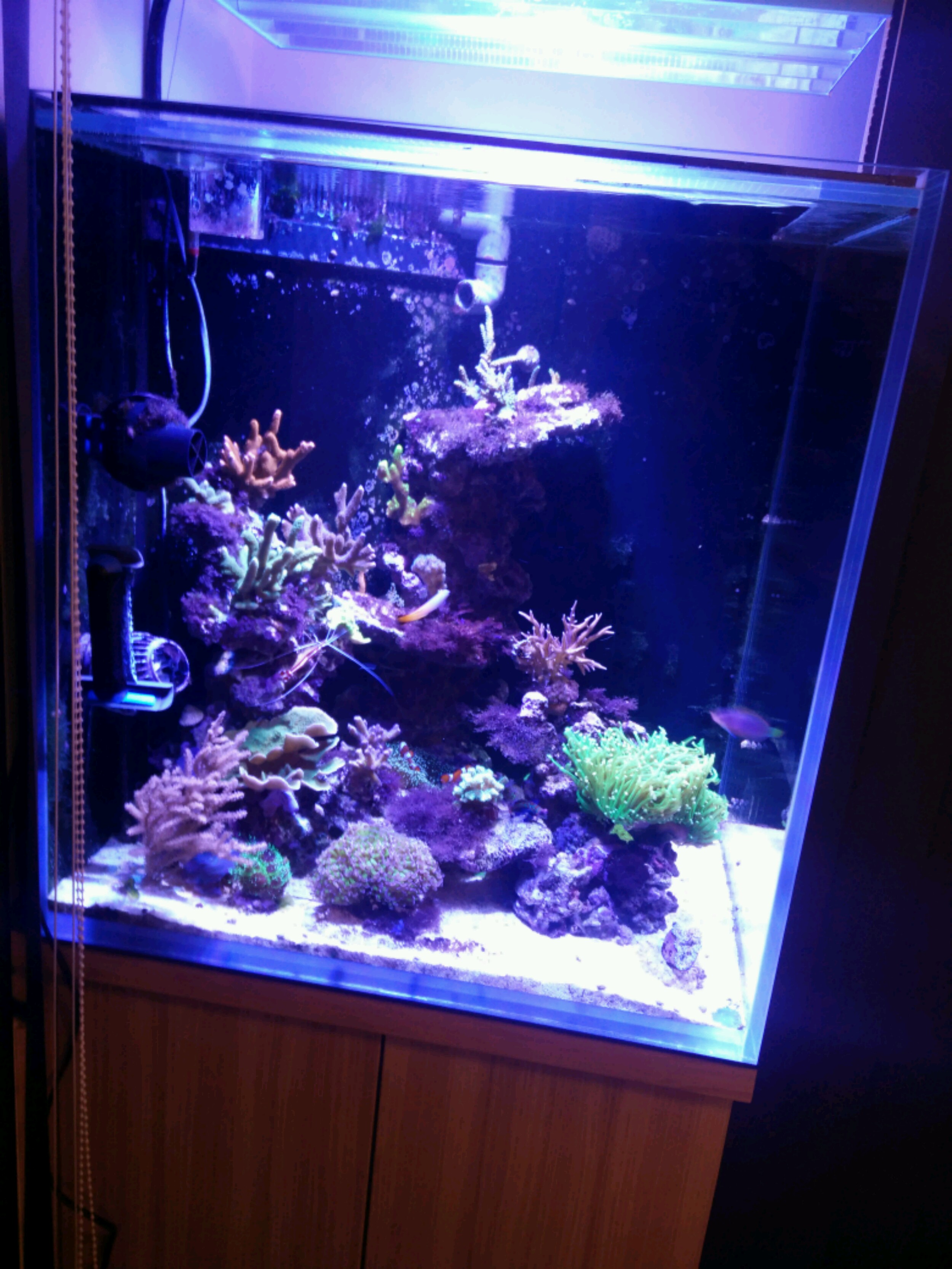 Hab hier ein aktuelles Gesamtes, aber nur mit Led fotografiert, darum kein so schönes foto. Muss aber zugeben das ich vor 9Tagen mit der zugabe der Basis aufgehört habe, die meisten Algen ausgezupft und momentan nur mit Nutri Complete arbeite.