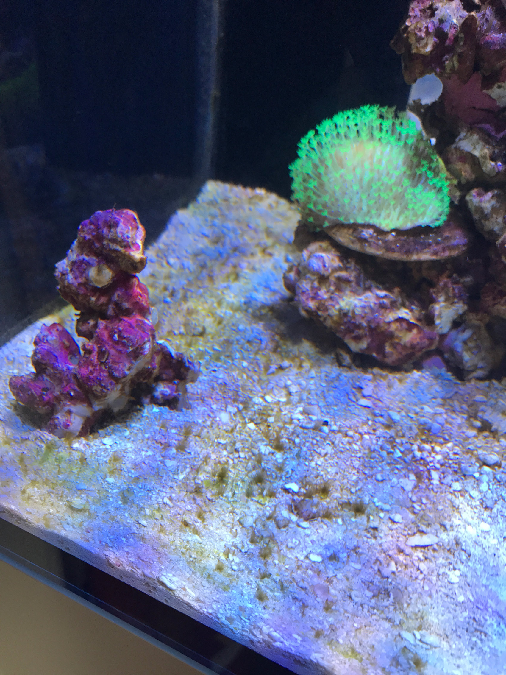 Meine Kieselalgen sind verschwunden und nun habe ich diese Algen bekommen. Sie wachsen am Kies und am Riff, es bilden sich teilweise auch Blasen. Was könnte das sein und gibt es hier Handlungsbedarf?