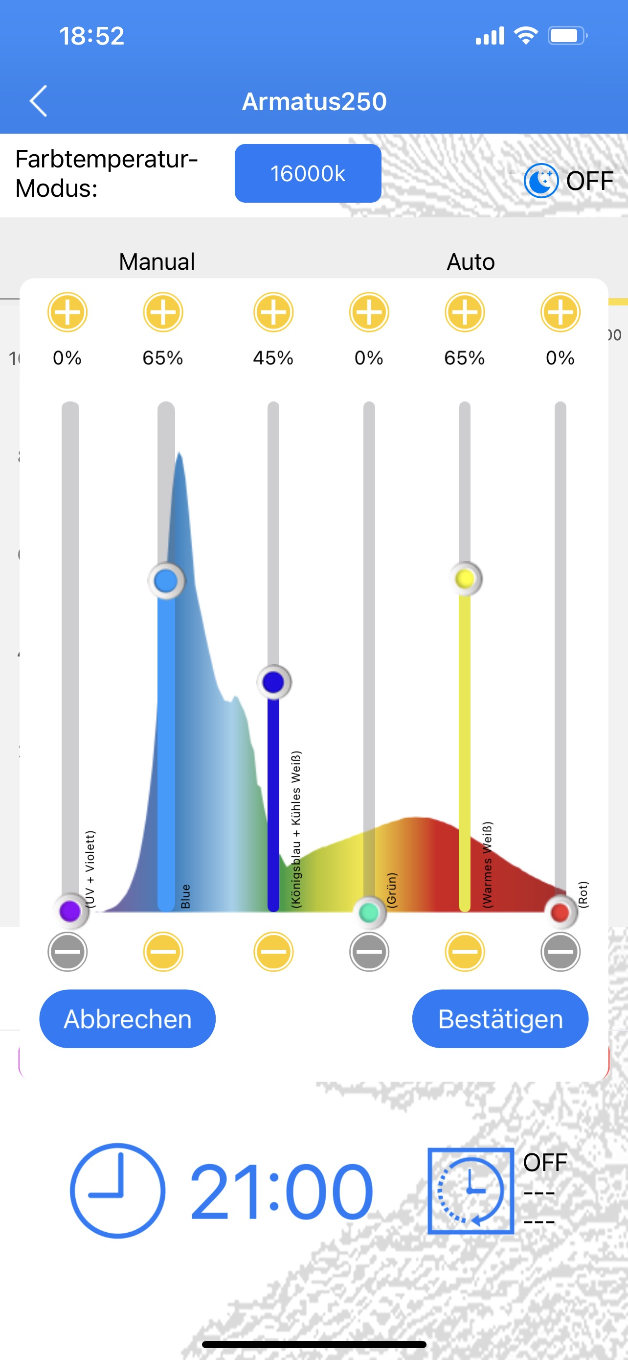 - Lichteinstellung laut Sangokai , siehe Foto 6h täglich