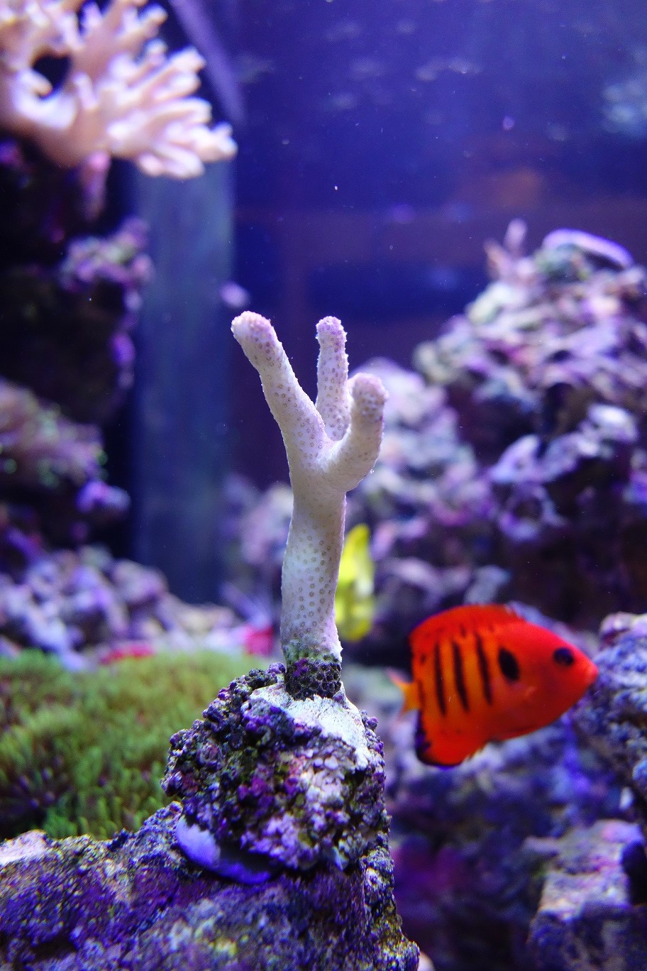 Leider picken die Flammenzwergkaiser auch noch an den Korallen. Ich bezweifle aber das es nur an den Fischen liegt.