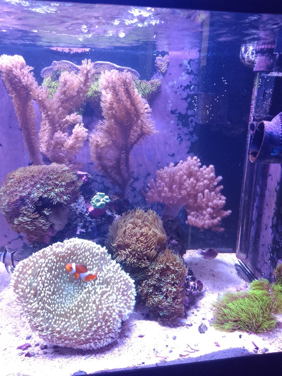 Den Nemos geht es mit ihrer Pilzlederkoralle prächtig. Ich kann regelmäßig beobachten wie gebalzt wird aber Nachwuchs gab es noch nicht oder ich hatte den noch nicht entdeckt.