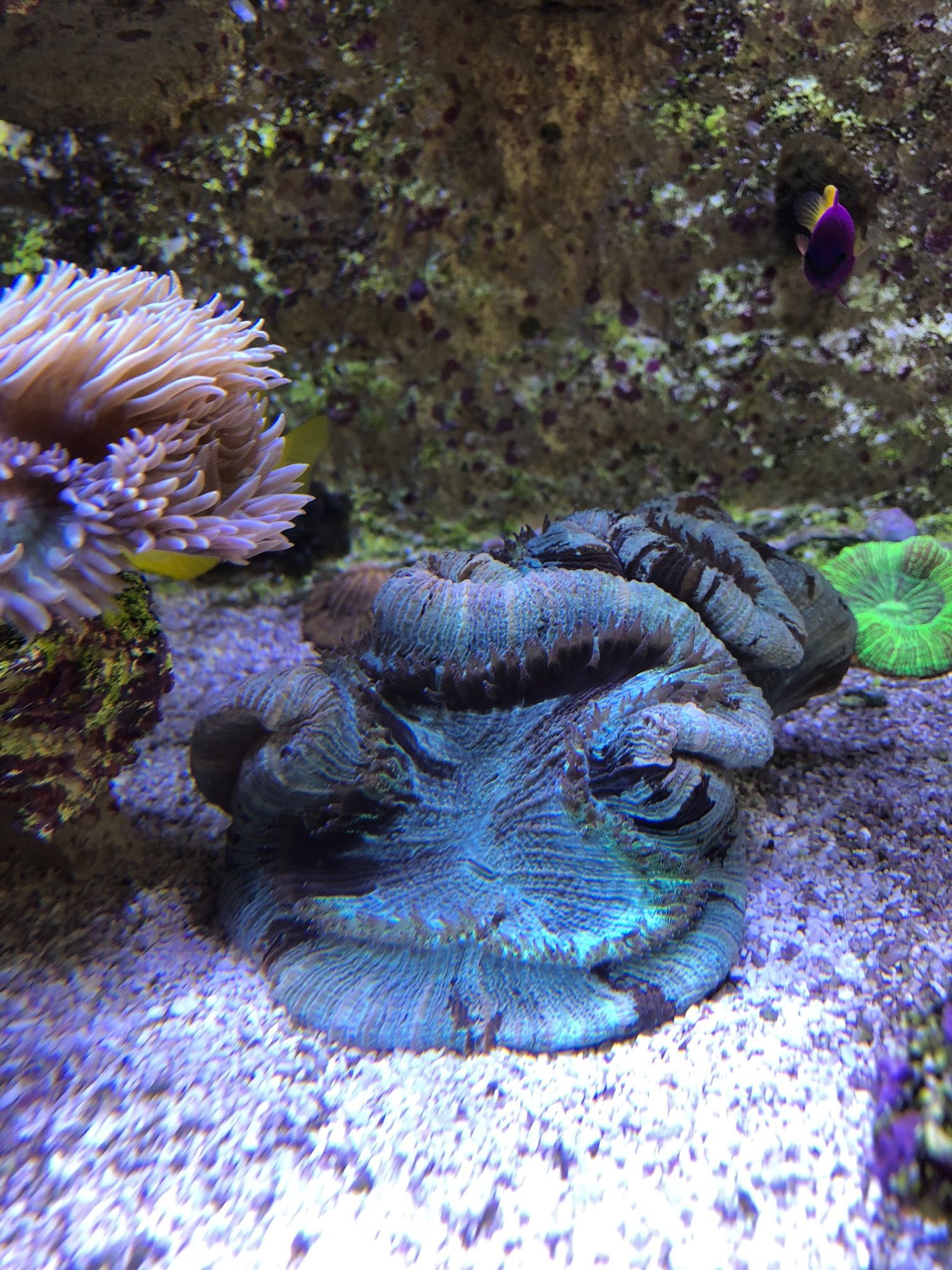 Ich habe bei meiner aktuell das Problem, dass sie unter tags nicht expandiert. Auch verschiedene Standorte (Licht/Strömung) bringen keinen Unterschied. Nachts kommen die Fangpolypen aber ordentlich raus und ich habe auch schon gefüttert (FM LPS Pellets, Mysis).