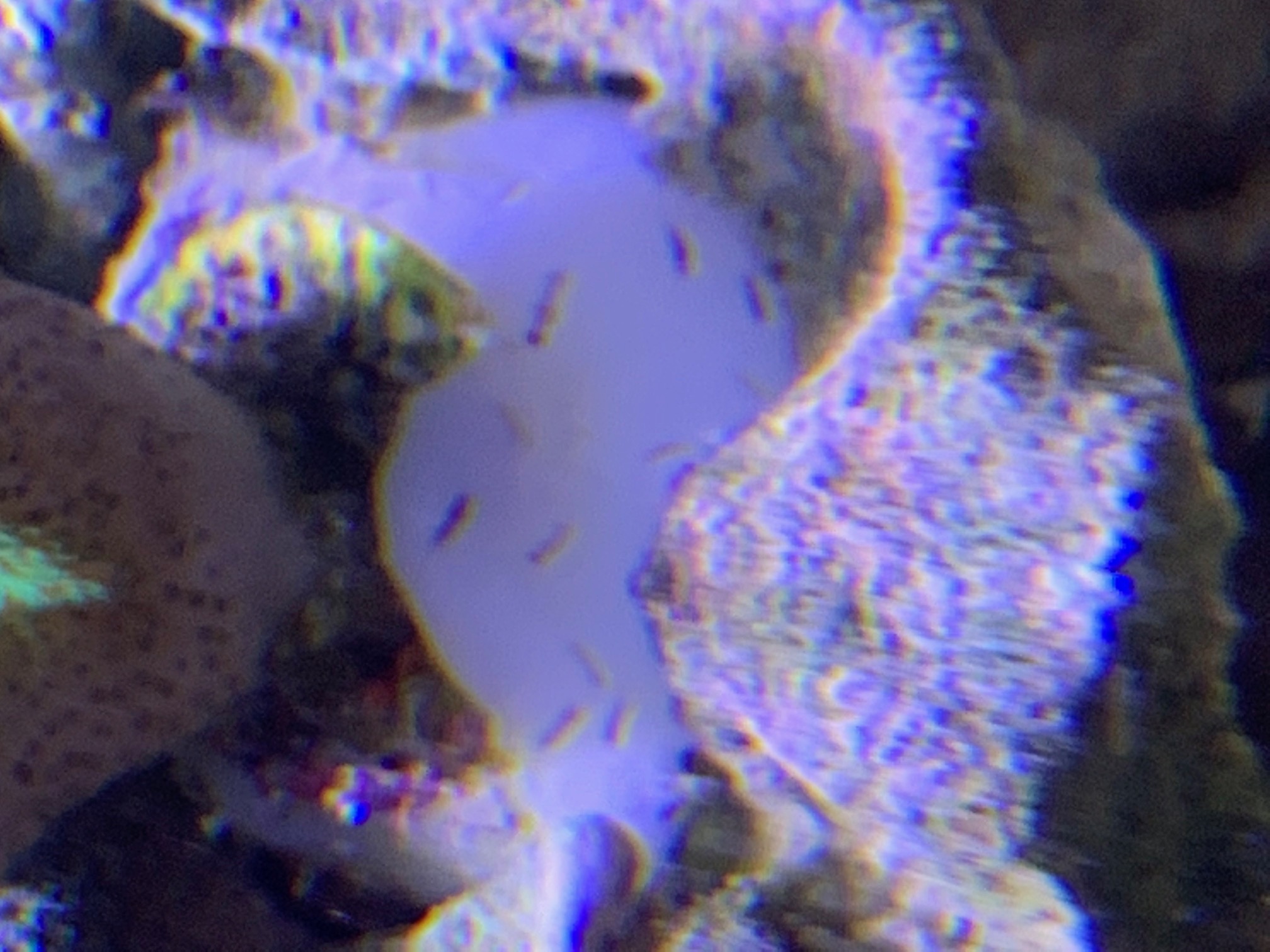 Das Erste sieht aus wie kleine Flöhe oder Ameisen in klein, die wild an den Korallen und unter den Korallem rumlaufen.