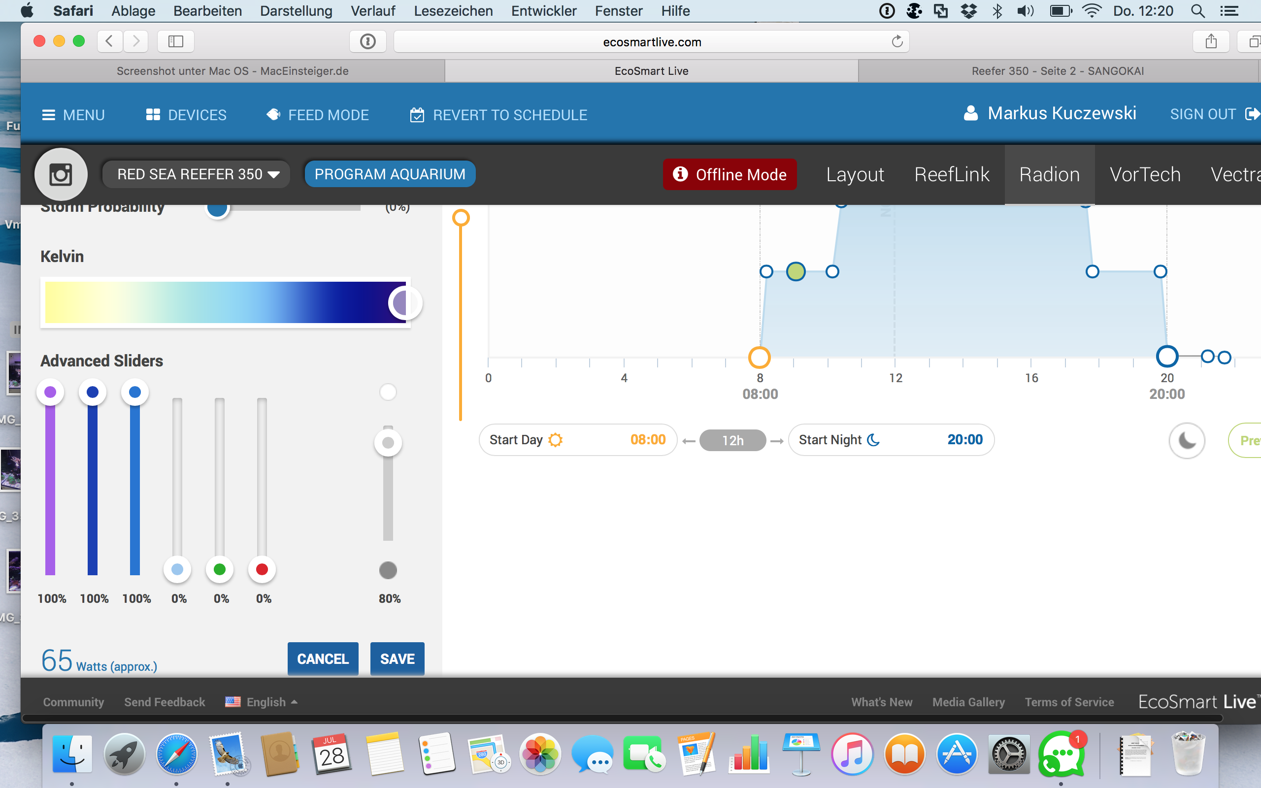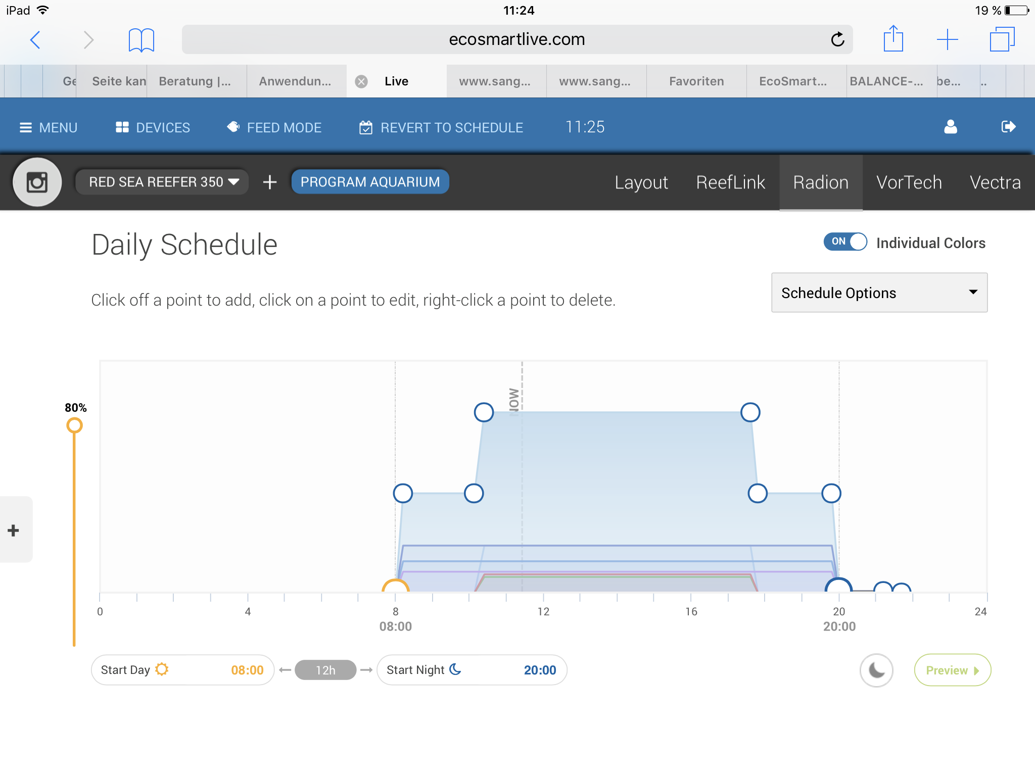 Danke für das Profil, ich benötige aber die Einstellungen der Regler, also die Lichtzusammensetzung, nicht das Profil. Warum hast Du das Profil so eckig gemacht? Der Verlauf entspricht einer Parabel. Infos zu günstigen Profilen siehe SEA-Z Thema Beleuchtungsdauer.