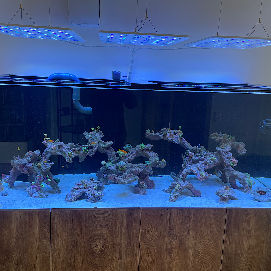 Lichttechnisch kannst du überlegen, ob du Violett und UV für den Anfang noch weiter runtersetzt, um den Korallen den Start möglichst stressfrei zu machen.