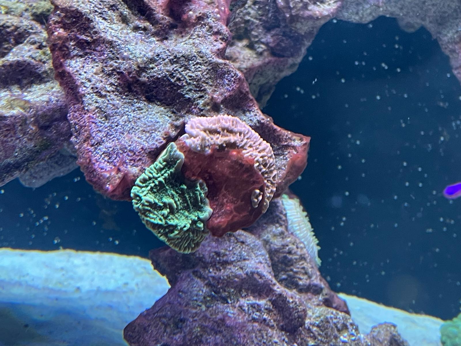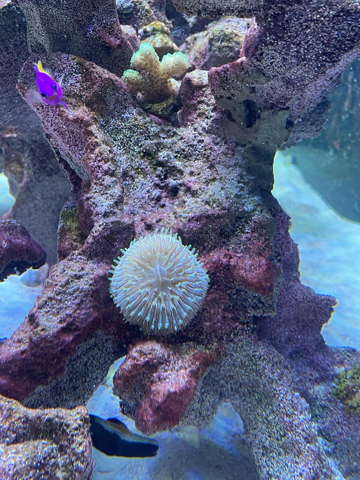 Korallen stehen denke ich für den Start in Ordnung. Einzig zicken meine Euphyillia etwas herum und ziehen sich häufig zusammen. Da ich leider bereits die ein oder andere Glasrose gefunden habe und dies direkt bei den Euphyillia, habe ich diese in verdacht. Da die vermeintlichen Glasrosen noch sehr klein sind kann ich leider kein Foto davon machen.