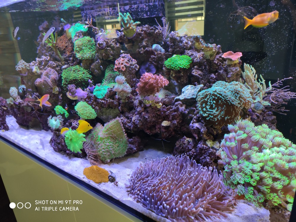 Eingerichtet wurde mit Real Reef Rocks, ca. 55 Kilo.