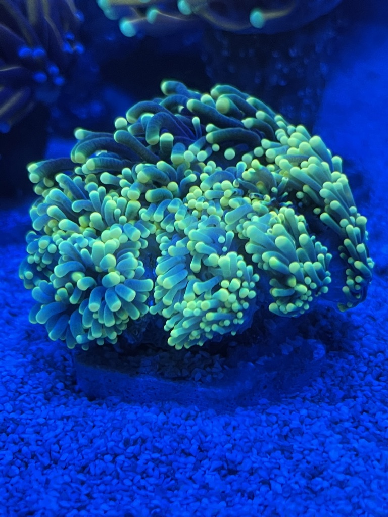 die Montipora BubbleGum dagegen will aber nicht so richtig, und seit paar Tagen sind paar Köpfe meiner Euphyllia Rasta blas geworden :(