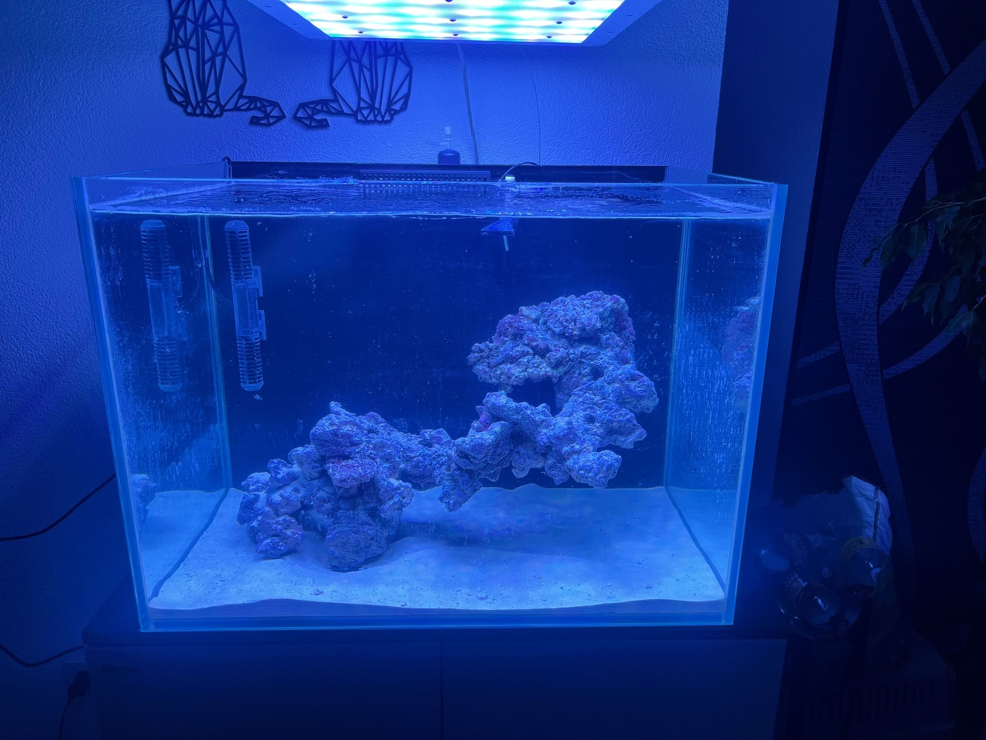 Diese Woche Dienstag wurde es nachdem der Riffaufbau endlich vollbracht war befüllt und aufgesalzen.