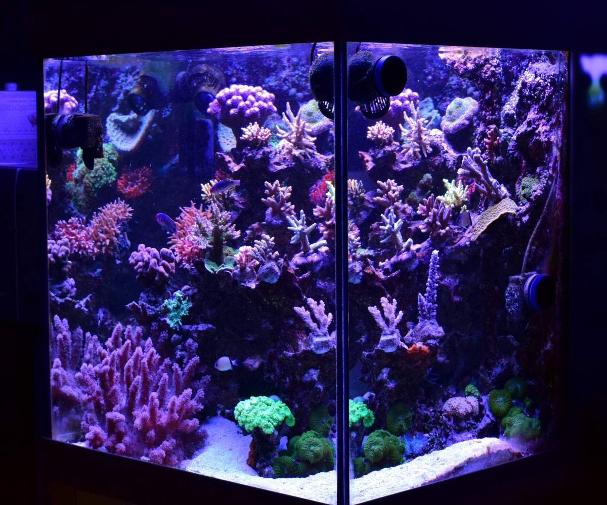 Die 6040 links oben mit auslass nach unten aufs Riff strömend,die andere 6040 unten an der rechten Seitenscheiben welche unter mein riff strömt.