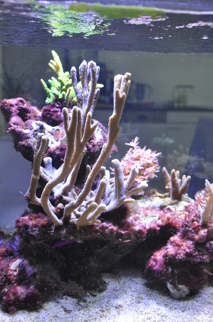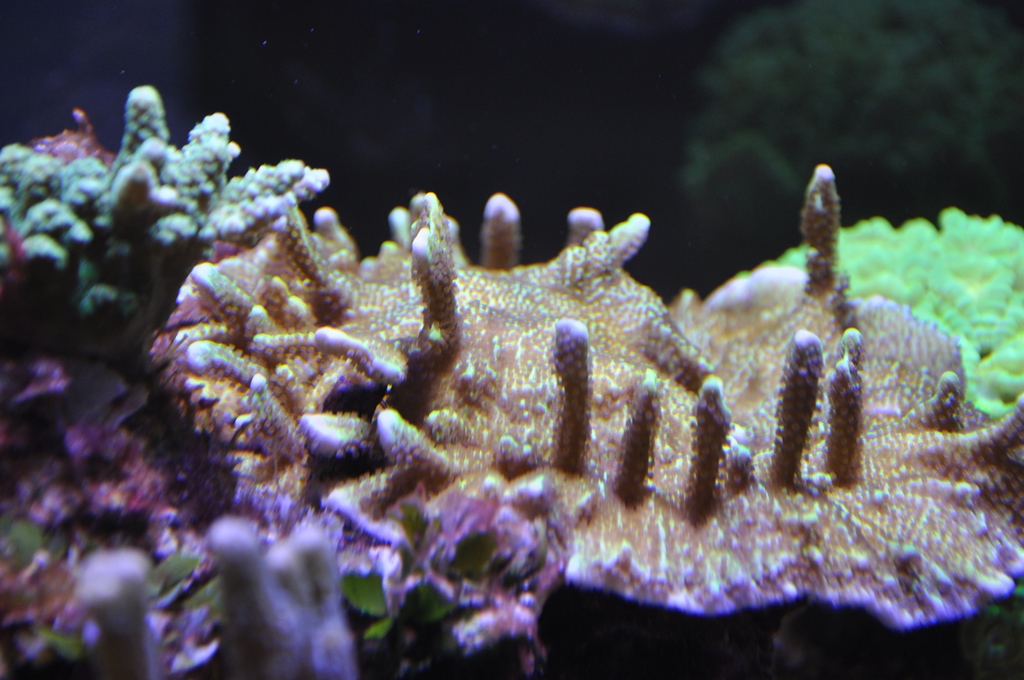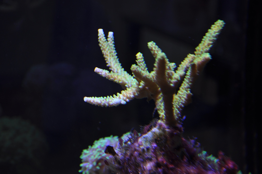 Was mir auch nicht so gefällt, dass mir die eine Acropora an der Basalscheibe beginnt auszubleichen. Ich habe eigentlich den Eindruck, dass sie genügend Strömung haben sollte.