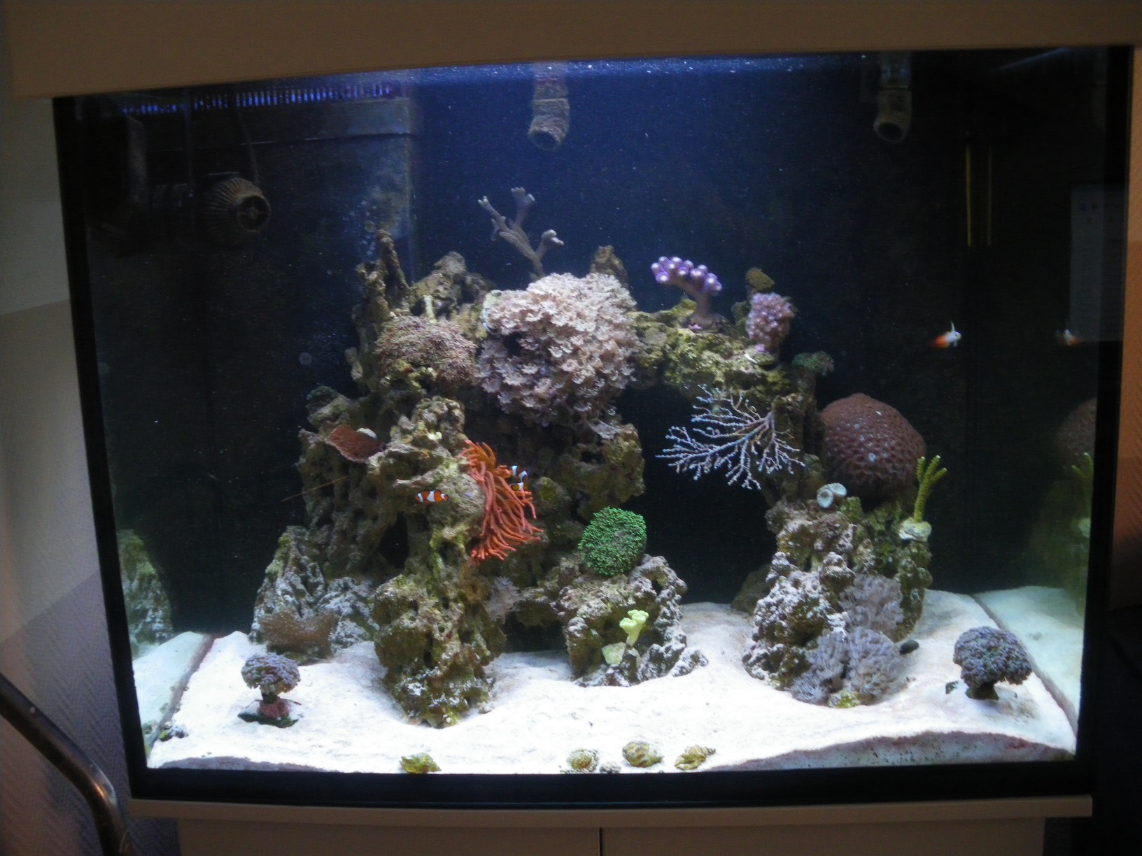 ich bin seit März stolzer Besitzer einees Meerwasseraquariums. Ich habe früher mit meinem Vater zusammen Diskus gezüchtet und wollte eigentlich schon immer mal ein Meerwasserbecken haben. Dieses Jahr hab ich das endlich geschafft. Es ist völlig anders als Süßwasser und total spannend.