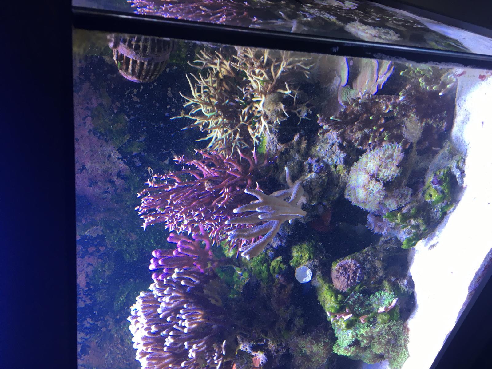 Deine Korallen geht es ja ganz gut, das ist die Hauptsache. Rechts die braune hystrix sieht nicht so dolle aus auf dem Foto, vielleicht täuscht das auch, aber das sitzen auch Cyanos zwischen und die wachsen normalerweise nur auf toten stellen. Eine gesunde Koralle wird von Cyanos meist nicht bedrängt.