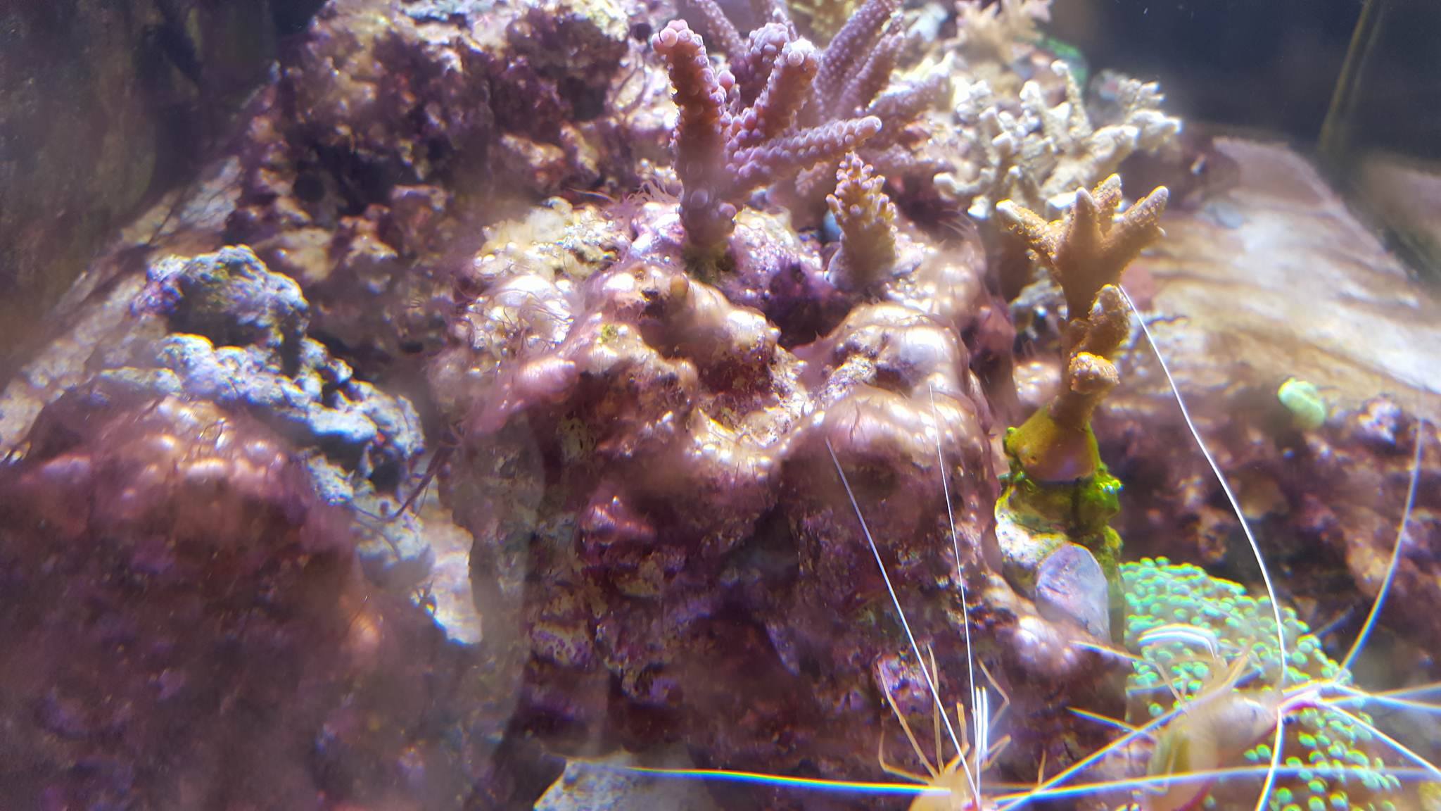 Anbei noch ein paar Bilder von den Cyanos. Diese habe ich am Wochende zu ca 80% abgesaugt. Acros wachsen jetzt, lps stehen gut, die Milka möchte noch nicht wachsen, steht aber gut da ,SPS Polypenbild ingesamt 2+