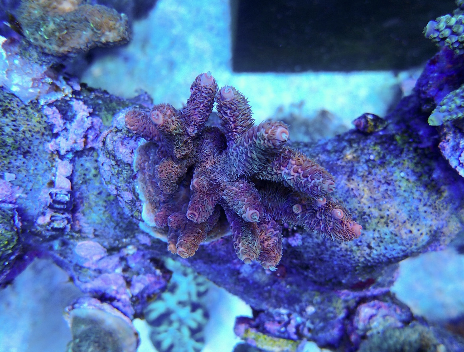 Anfangs war das eine sehr unscheinbare bräunlich/rosafarbene Millepora.