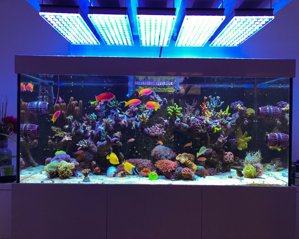 Nach der Umgewöhnung wachsen die Korallen genauso wie unter der ATI Hybrid, bei der Ausfärbung hat ganz klar die Orphek die Nase vorn. Viele Korallen haben „neue“ Farben bekommen (vermutlich wegen dem breiteren Spektrum und der Power die runter kommt).