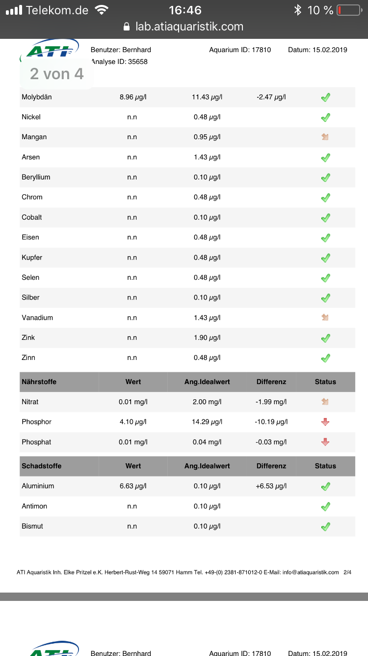 Ich finde ohnehin den angestrebten Idealwert von ATI für Phosphat recht hoch. Sollten Deine Werte ansteigen, die Dosierung herunterfahren.