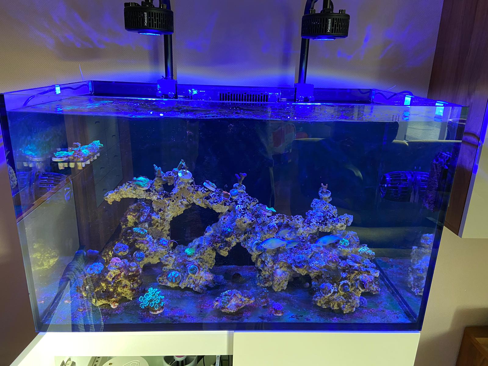 PO4 heute 0,018 bei Zugabe 2,3ml PComplex und Frostfutter Lobstereier. Komisch. Wo geht mein PO4 hin? ich dachte das Gestein wäre jetzt gesättigt. So viel Wachstum habe ich nicht. KH verbrauch liegt pro Woche zwischen 10 und 20ml. EisenAbsorber ist bei 30gr...wie seit Wochen