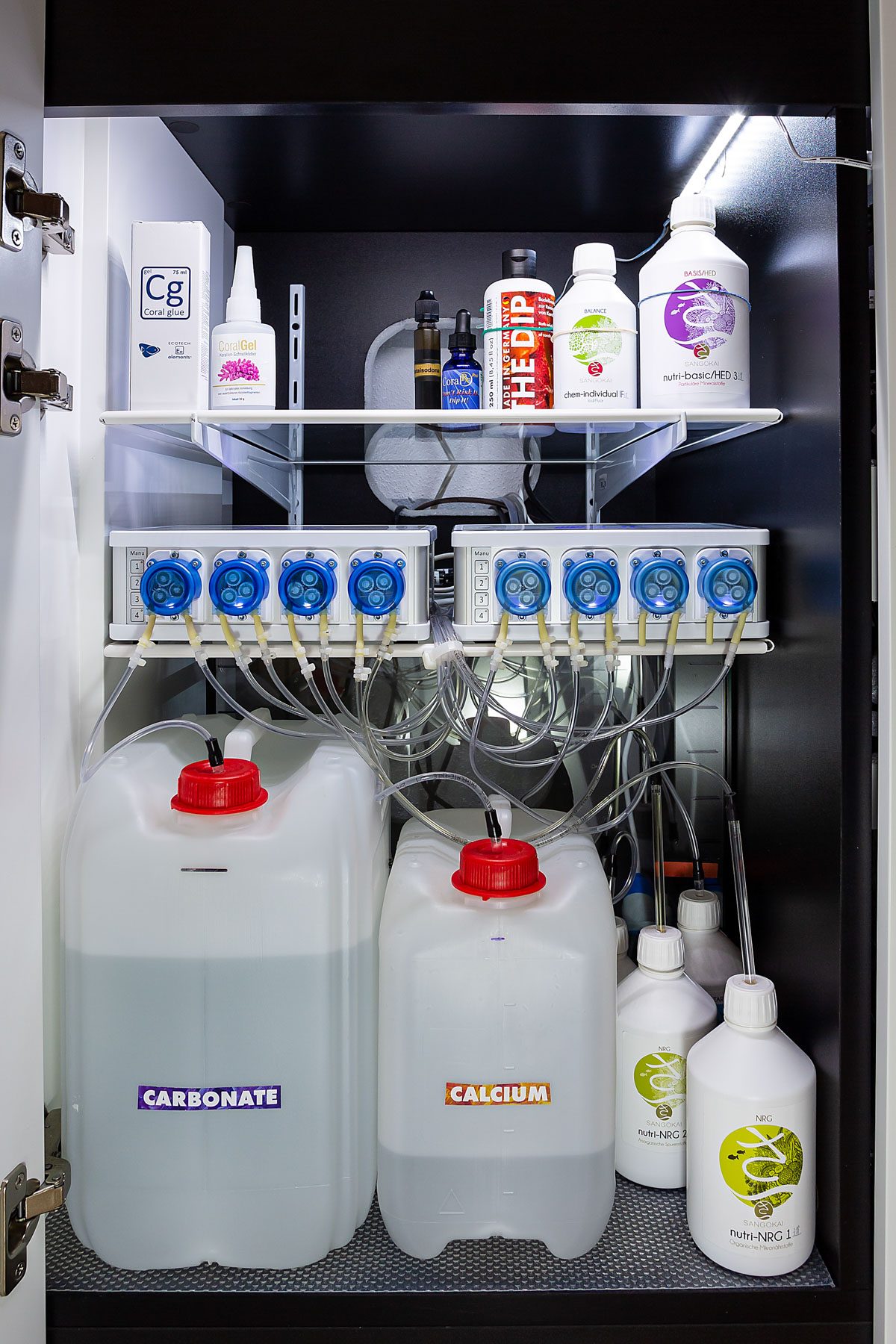 Zusätzlich wird Jod über den KH Kanister und Strontium über den Calcium Kanister dosiert.