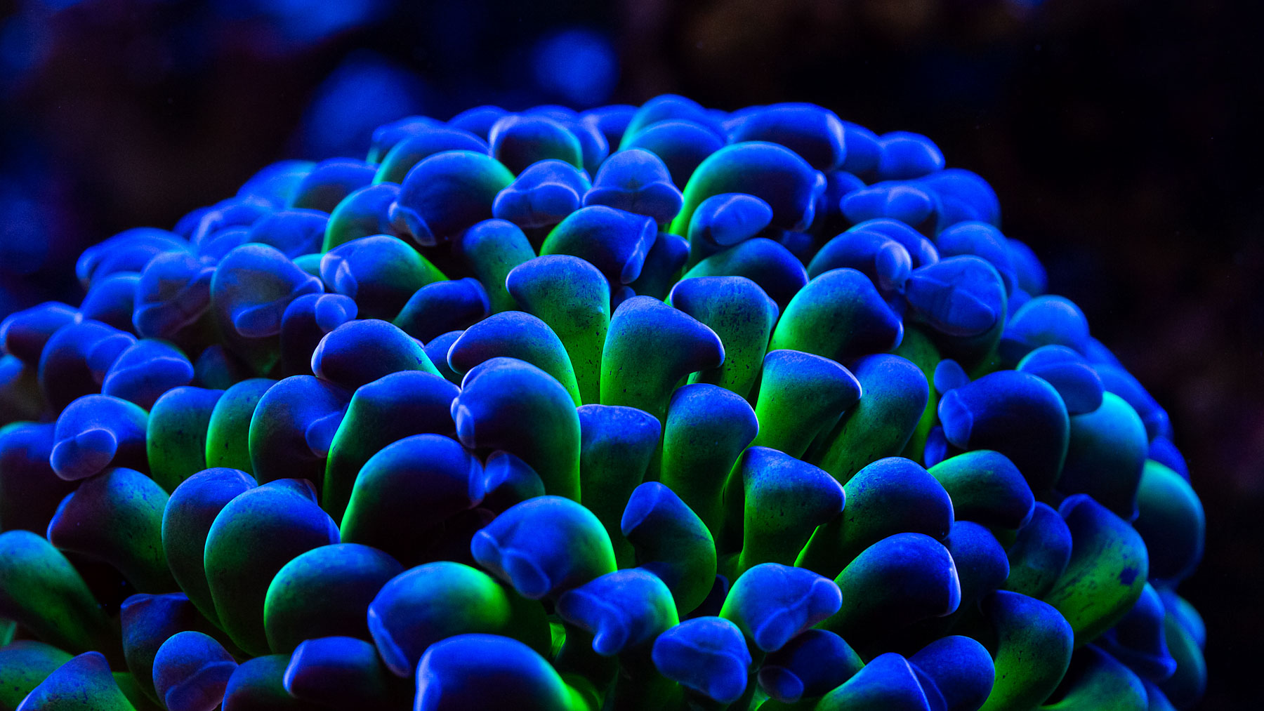 Euphyllia glabrescens Golden Torch 24K (wirkt wie auch die Goniopora Shazam in der Blauphase knalliger)