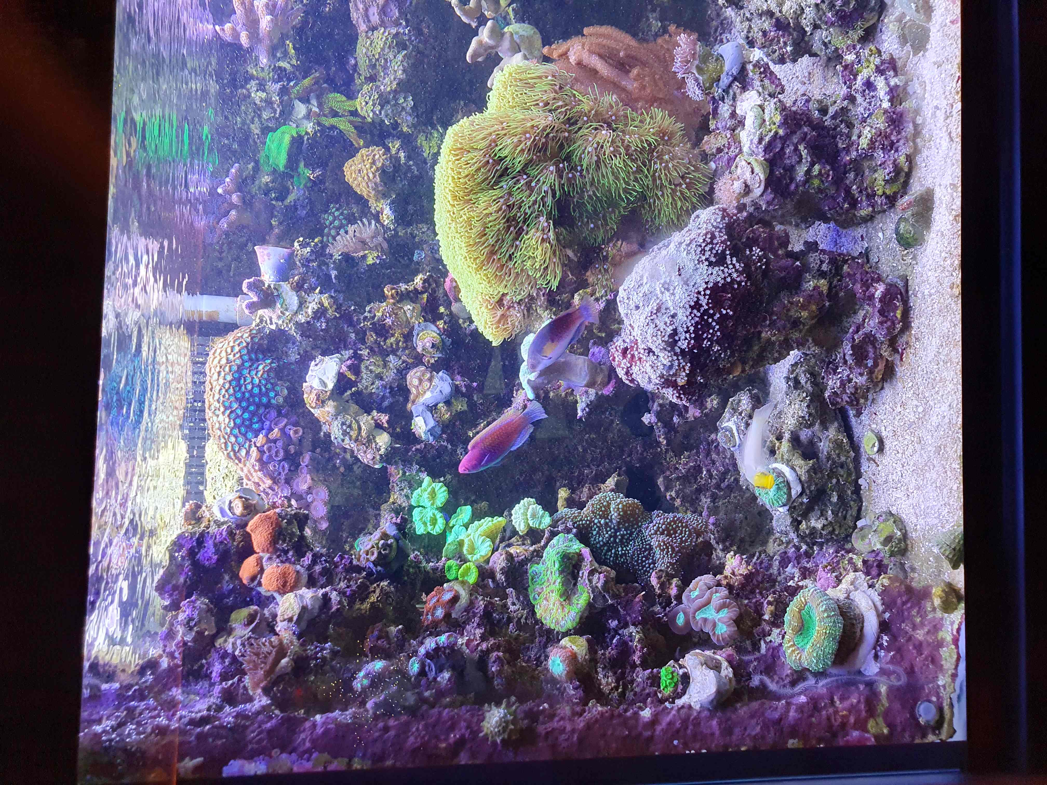 das waren doch krasse 12 Monate. Viel dummes ist passiert (eine Waschmaschine hat [ohne dass man es gesehen hat] mein Osmose Wasser verunreinigt und alle Fische getötet; Bryopsis überwucherten alles; ein digitales Messgerät von H. hatte ein mangelhaftes Reagenz. Ich dosierte viel CA, hatte aber tatsächlich keinen Mangel sondern Überdosis).