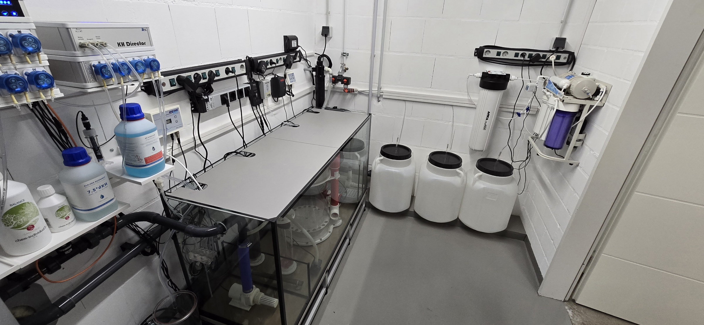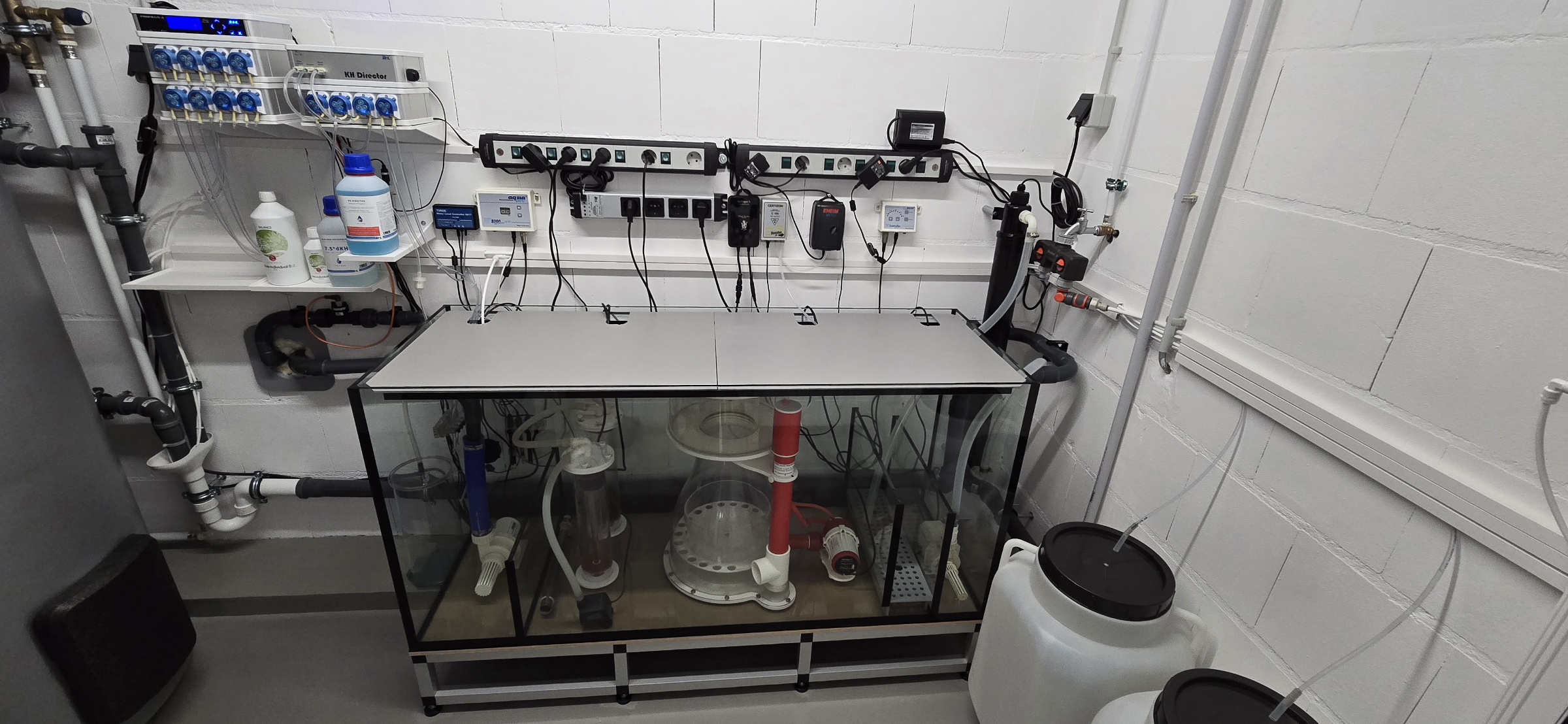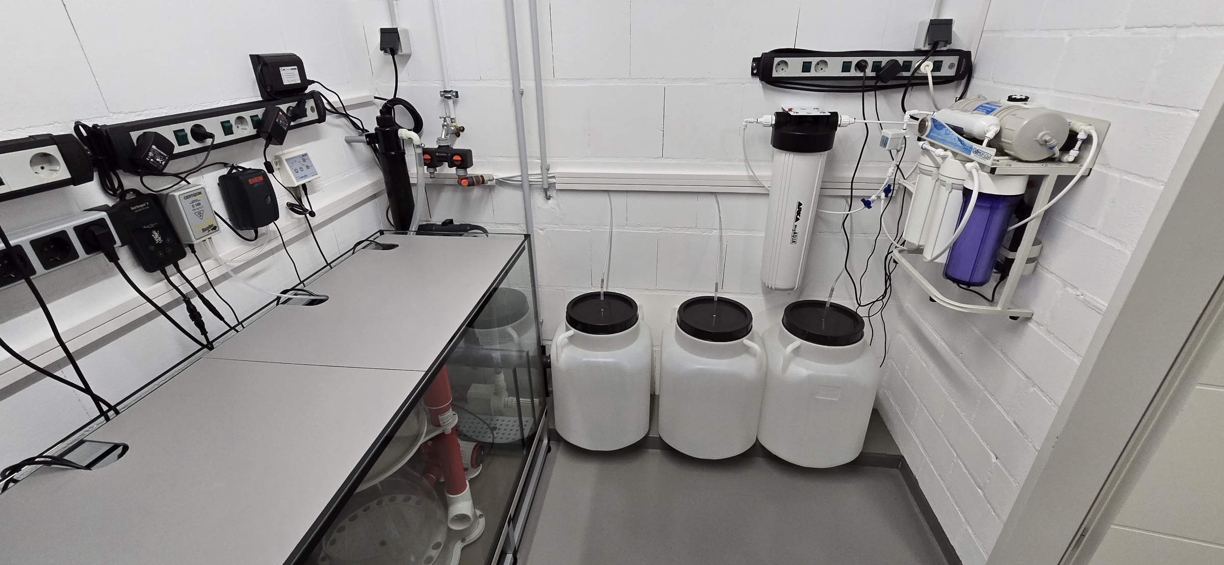 In der Zwischenzeit wurde der Technikraum hinter dem Aquarium fertiggestellt, die Lampen ausgesucht und bestellt (5x Straton-X),