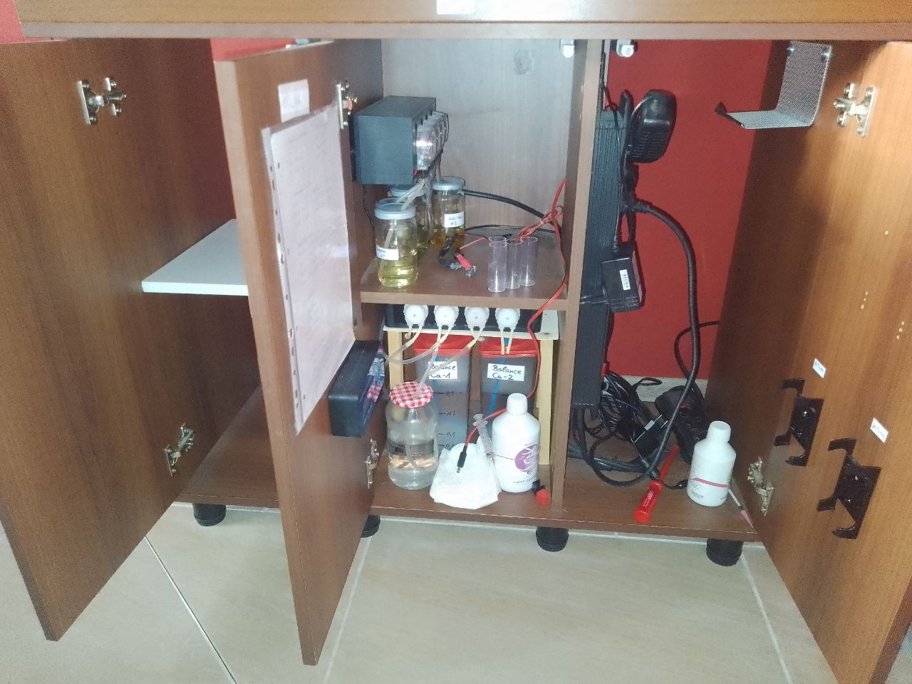 Den Unterschrank aufräumen, Kabelage wieder sortieren und die Kalibrierung der Dosierpumpe kontrollieren hat heute mein Hauptaugenmerk. Es ist keine schöne Arbeit aber es muss ja trotzdem mal gemacht werden. Und wenn nicht jetzt wann dann...