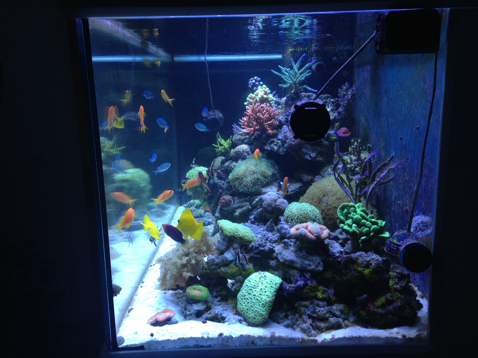 Natürlich habe ich dann auch einige Dinge optimiert, wie beipielweise die Lampeneinstellung laut Sangokai-Empfehlung (war vorher zu blaulastig), die Strömungspumpen. Und in den letzten tagen habe ich auch den Abschäumer auf sehr trocken eingestellt. Auch habe ich den Durchfluss reguliert.