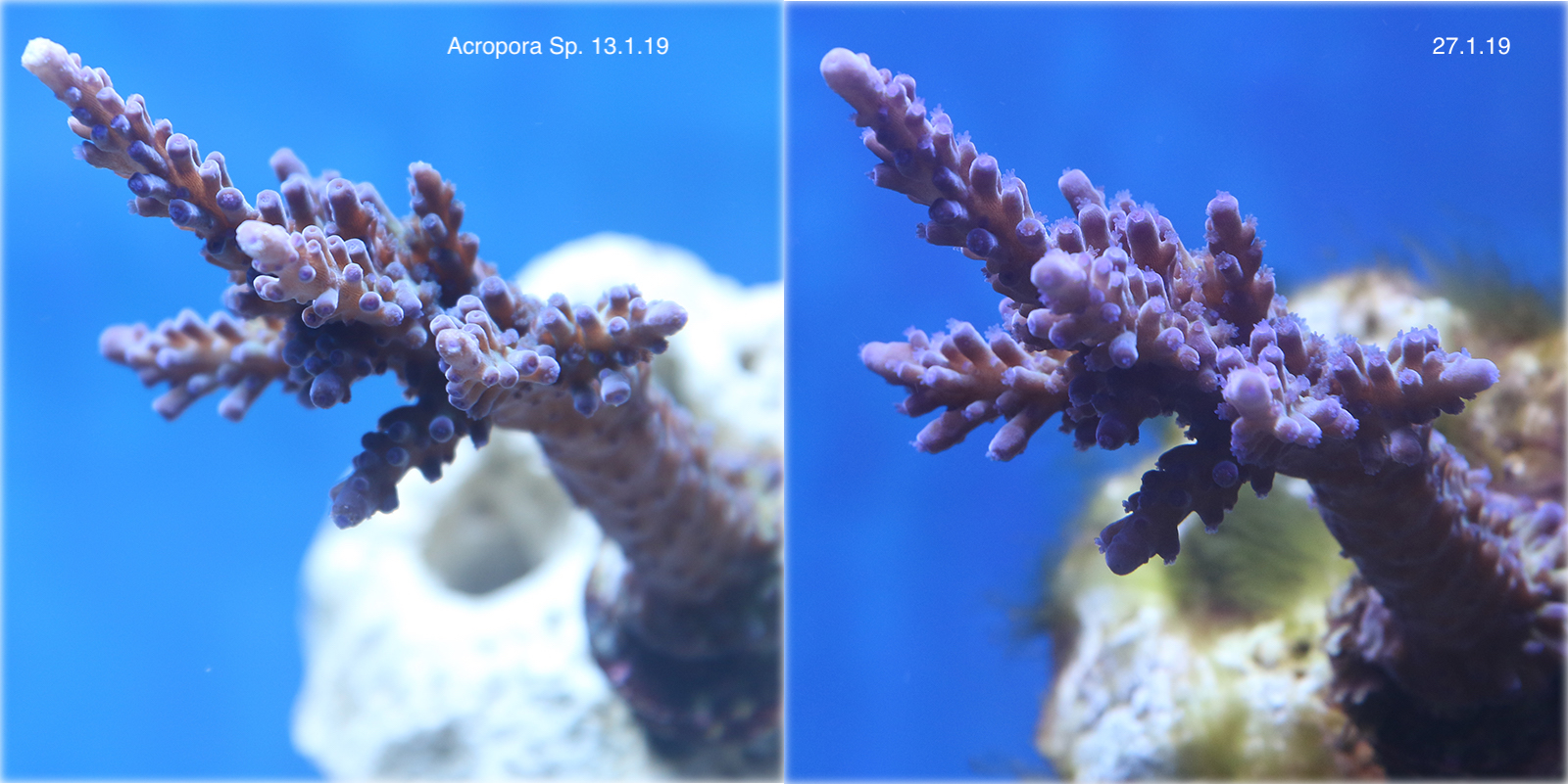 Die Acros sehen gut aus. Und mal ehrlich in 14 Tagen kann man bei neuen Tieren auch nicht ein Meterwachstum erwarten.