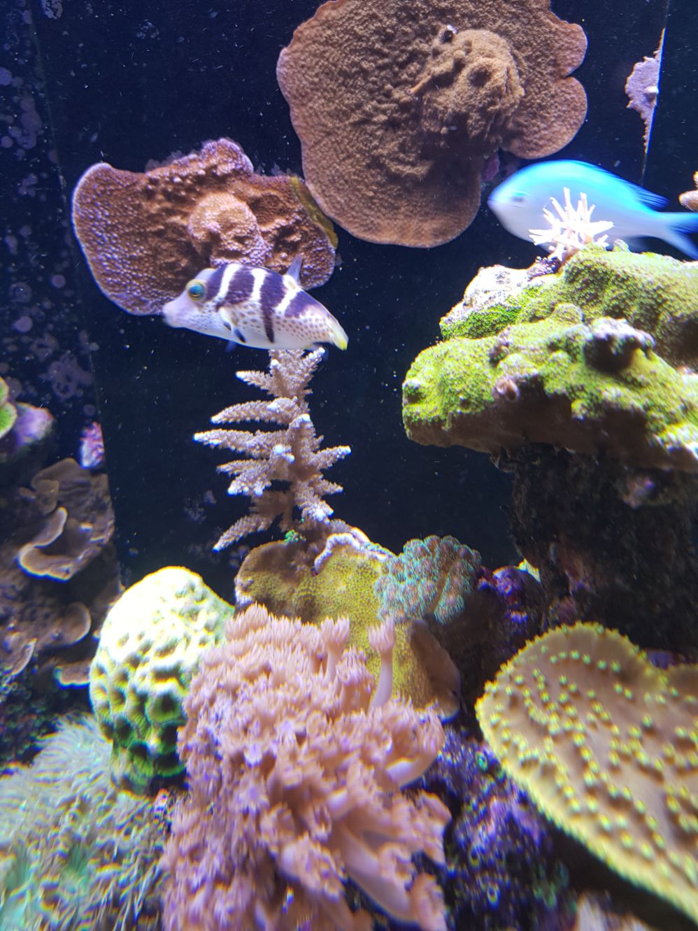 Die meisten Korallen stehen sehr gut, besonders Accros und Montis. Eher kümmerlich eine Acantastrea, die einfach nicht in die Pötte kommen will. Ausserdem kümmern pumpende Xenien und grüne Röhrenkrallen vor sich hin. Ich weiss, die meisten möchten die gar nicht im Becken haben, ich aber schon. Jemand ne Idee, warum die so kümmern?