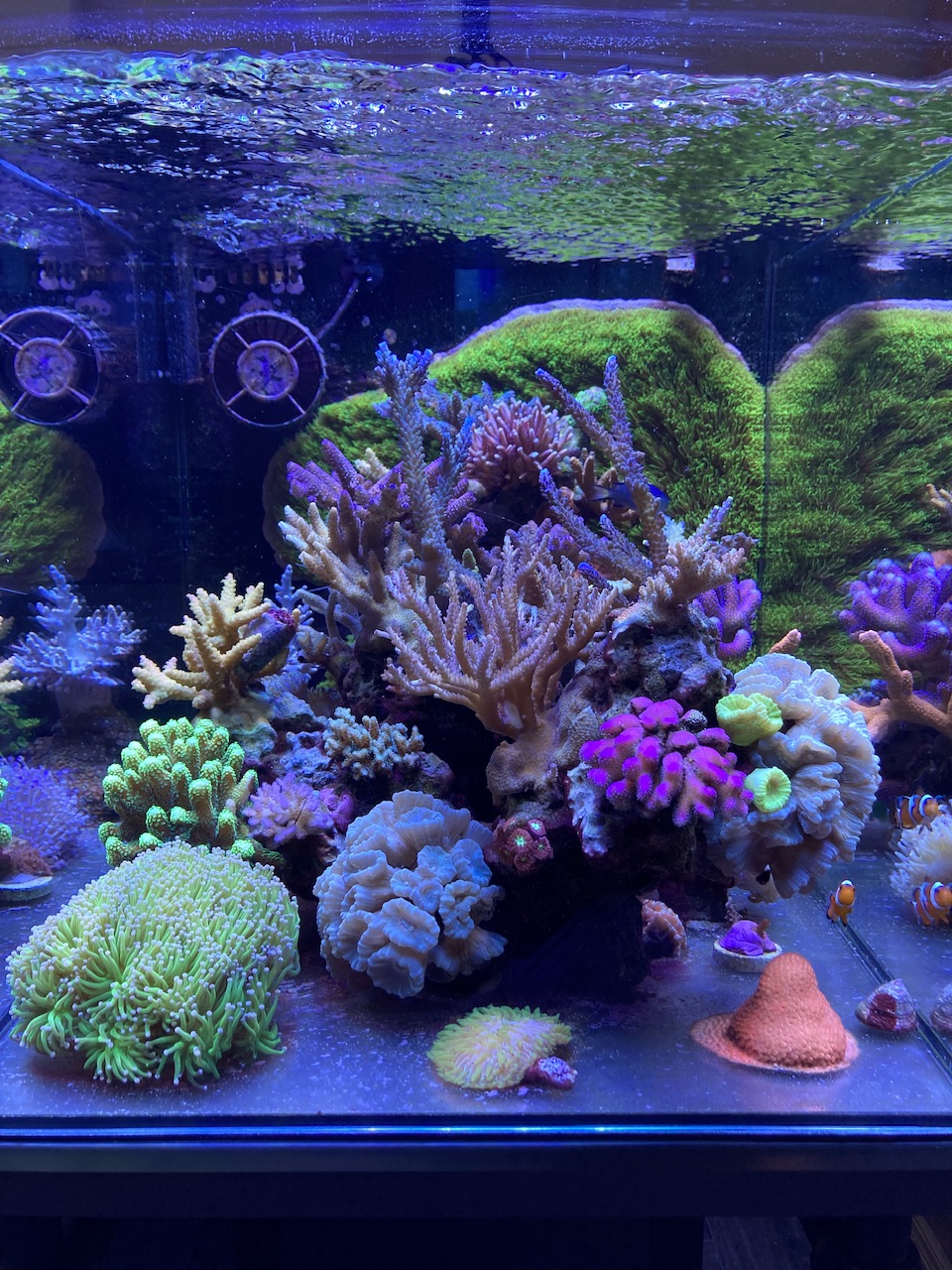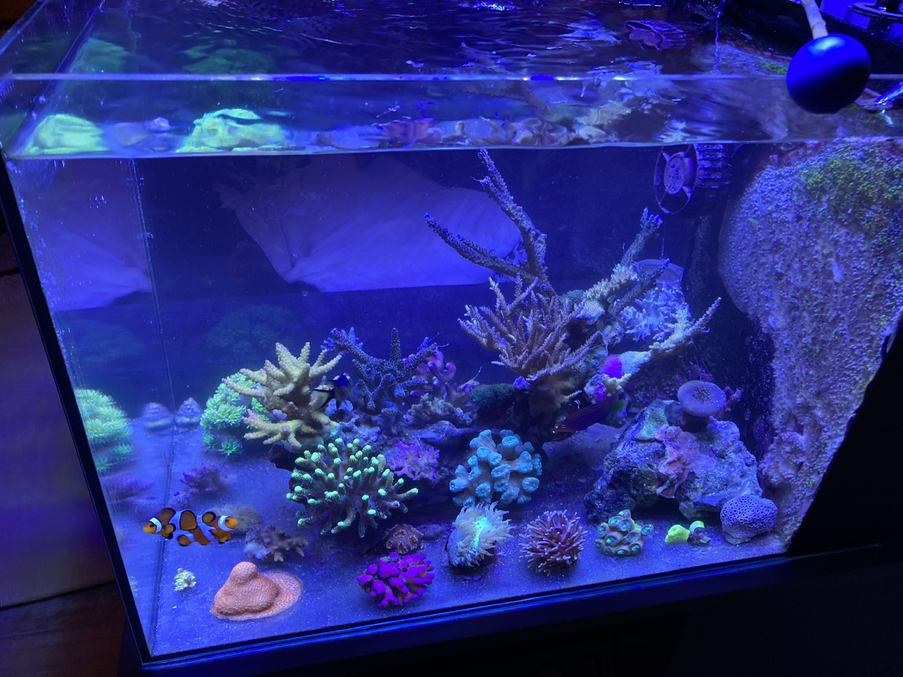 Das Licht ist schon von 70 auf 60% reduziert (ca. 250 PAR bei 15 cm Wassertiefe) UV ist schon lange auf 20 und V auf 90.