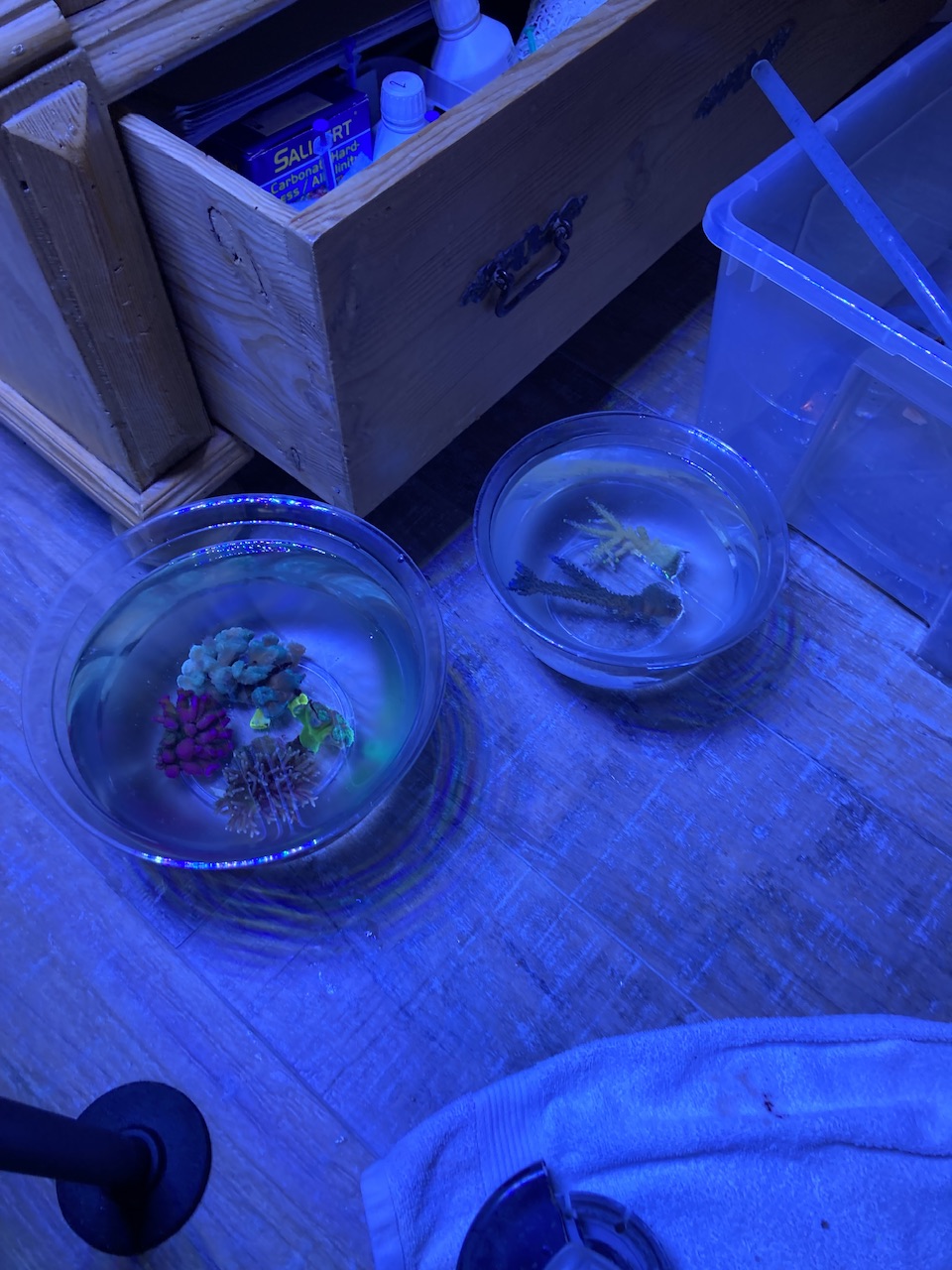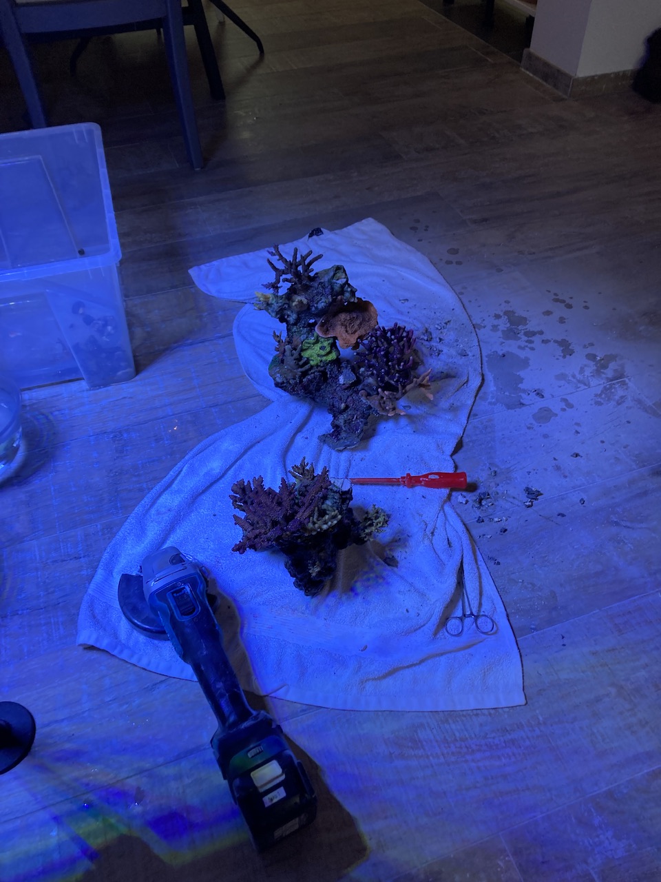 und Mittwoch werden die restlichen Korallen eingeklebt…werde dann den Stein rausnehmen und mit heisskleber kleben. Hab heute mit dem ReefBond und DD Kleber fast die Krise bekommen! 3 cm Ableger kannst du damit kleben…aber alles andere kannst du vergessen…
