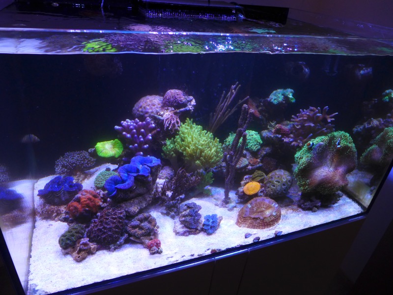 Heute habe ich die große Tridacna maxima noch einmal aus dem Becken genommen und ein paar kleine Glasrosen abgebürstet, bin bisher ("toi-toi-toi") im sonstigen Becken glasrosenfrei und es soll auch so bleiben. Ging ganz gut mit einer kleinen Bürste. Denke das kann die Muschel auch gut abhaben ein paar Sekunden an der frischen Luft, hoffe ich zumindest!