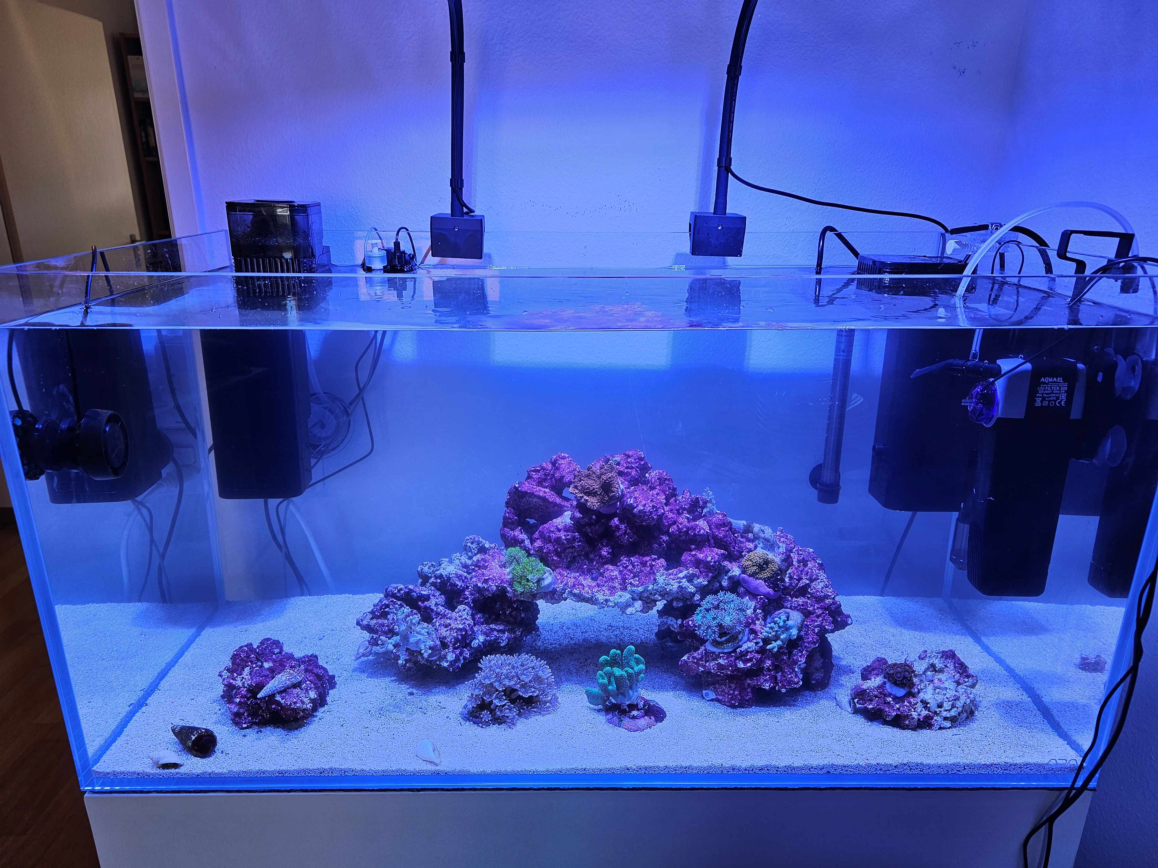 Heute kam wieder eine ICP. Die Clavularia ist seit einigen Tagen nicht mehr richtig offen. Sonst stehen die Korallen nicht schlecht.