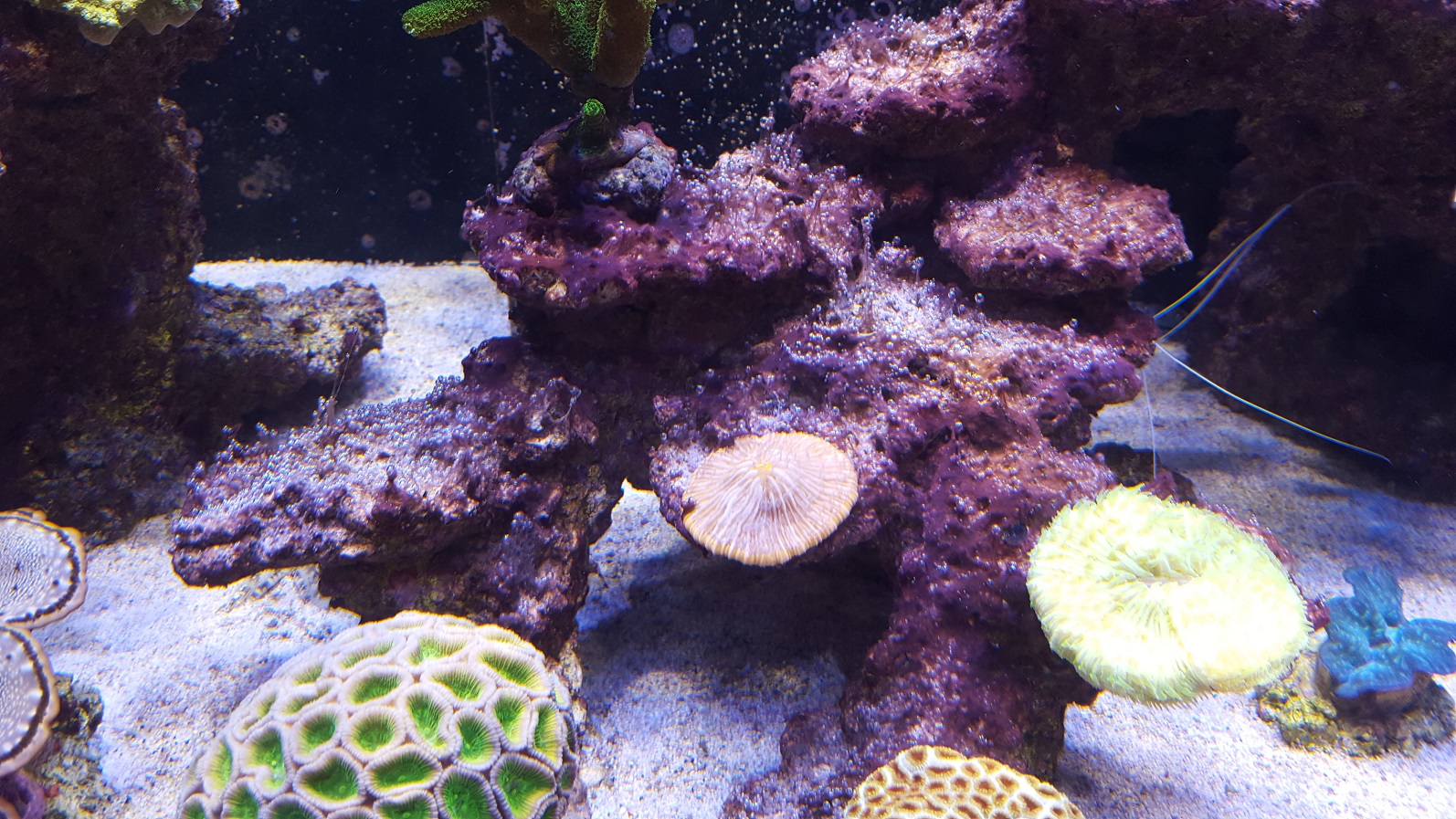 Die Korallen stehen aber gut und zeigen Wachstumsspitzen, einige sterben vom Fuss her ab und werden schwarz, die könnte aber noch mit der Metallvergiftung zusammenhängen...die Analyse wird es zeigen ob sich was verbessert hat.