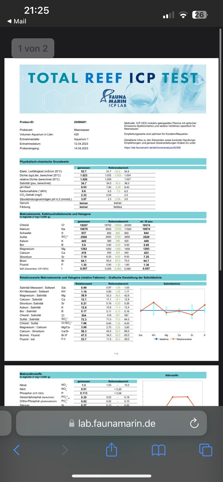 Ja da bin ich mir eigentlich ziemlich sicher. Ich messe mit FM, habt ihr andere Vorschläge? Ich fahre mit garnichts aktuell da die KH ja erstmal fallen muss. Hab nichts gemacht ausser Salz angemischt. Fauna Marin gibt auch eine KH von 8,5 auf dem Salzeimer an. Falls etwas nicht stimmt könnt ihr mir aber gerne sagen was ich ändern soll.