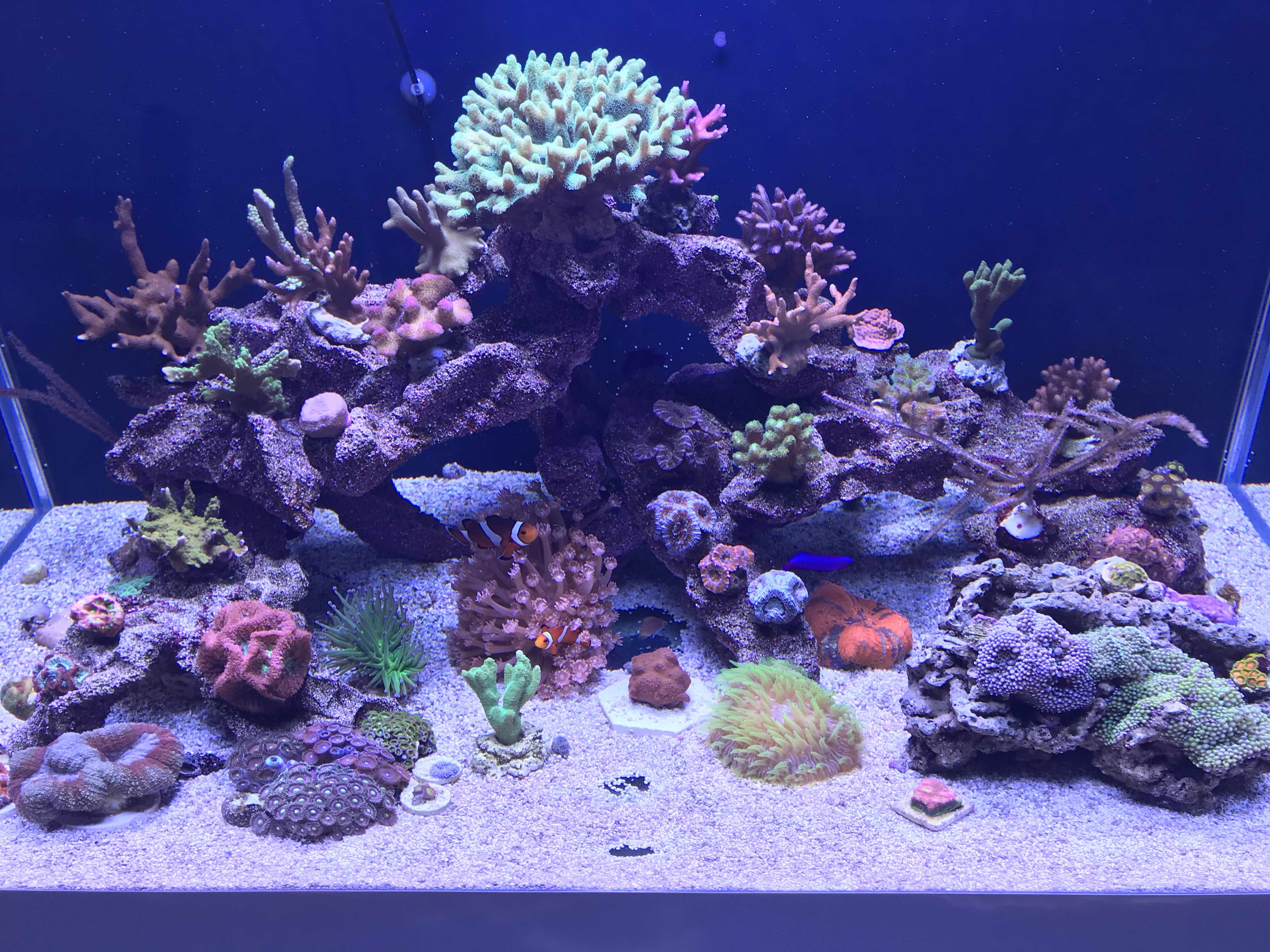 der Umbau des Beckens ist nun 4 Wochen her. Außer bei der Kh gab es keine Ausreißer oder größeren Probleme. Die Nährstoffe liegen bei PO4 immer zwischen 0,01 - 0,02, NO2 0,01, NO3 2. Die Korallen sehen gut aus und die Fische erfreuen sich an den vielen neuen Versteckmöglichkeiten.
