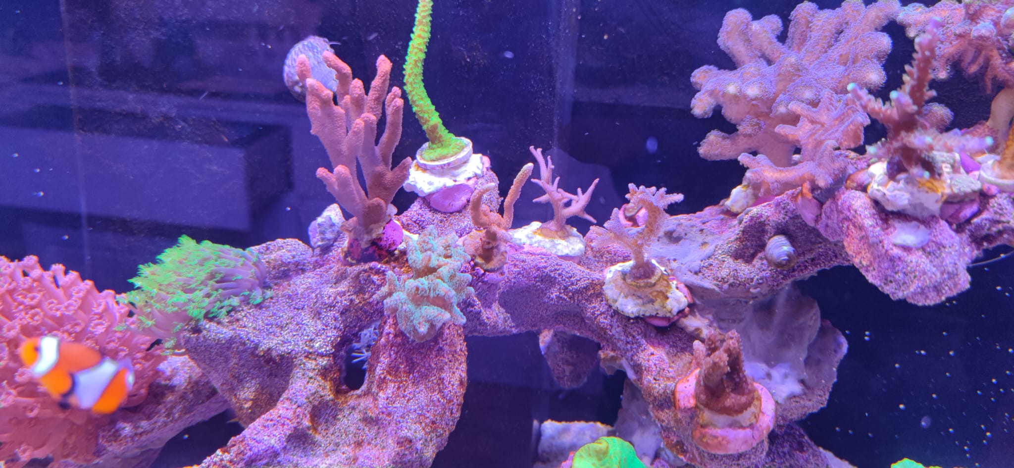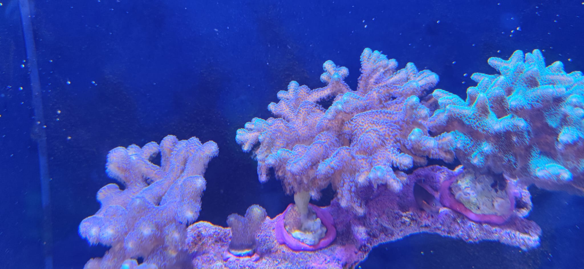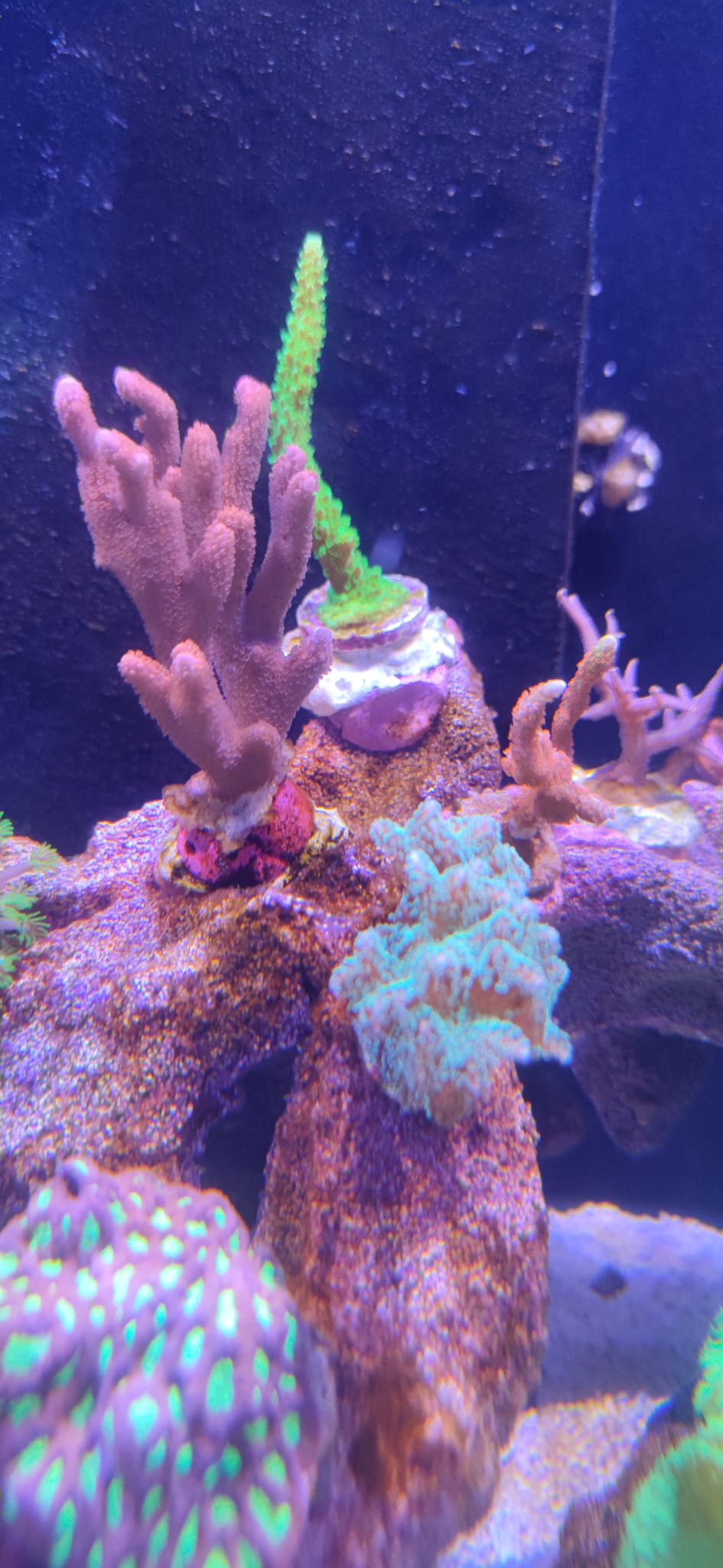 Wie am ersten Bild sichtbar hat trotz reduktion der Lichtintensität mit der 3ten LAmpe die Goniastrea trotzdem Lichtsstresssymptome gezeigt und wurde blass.