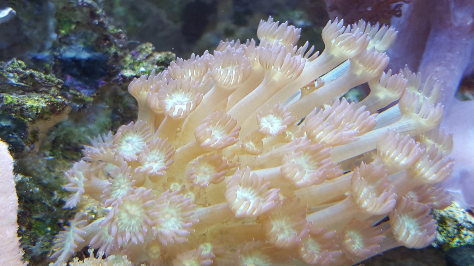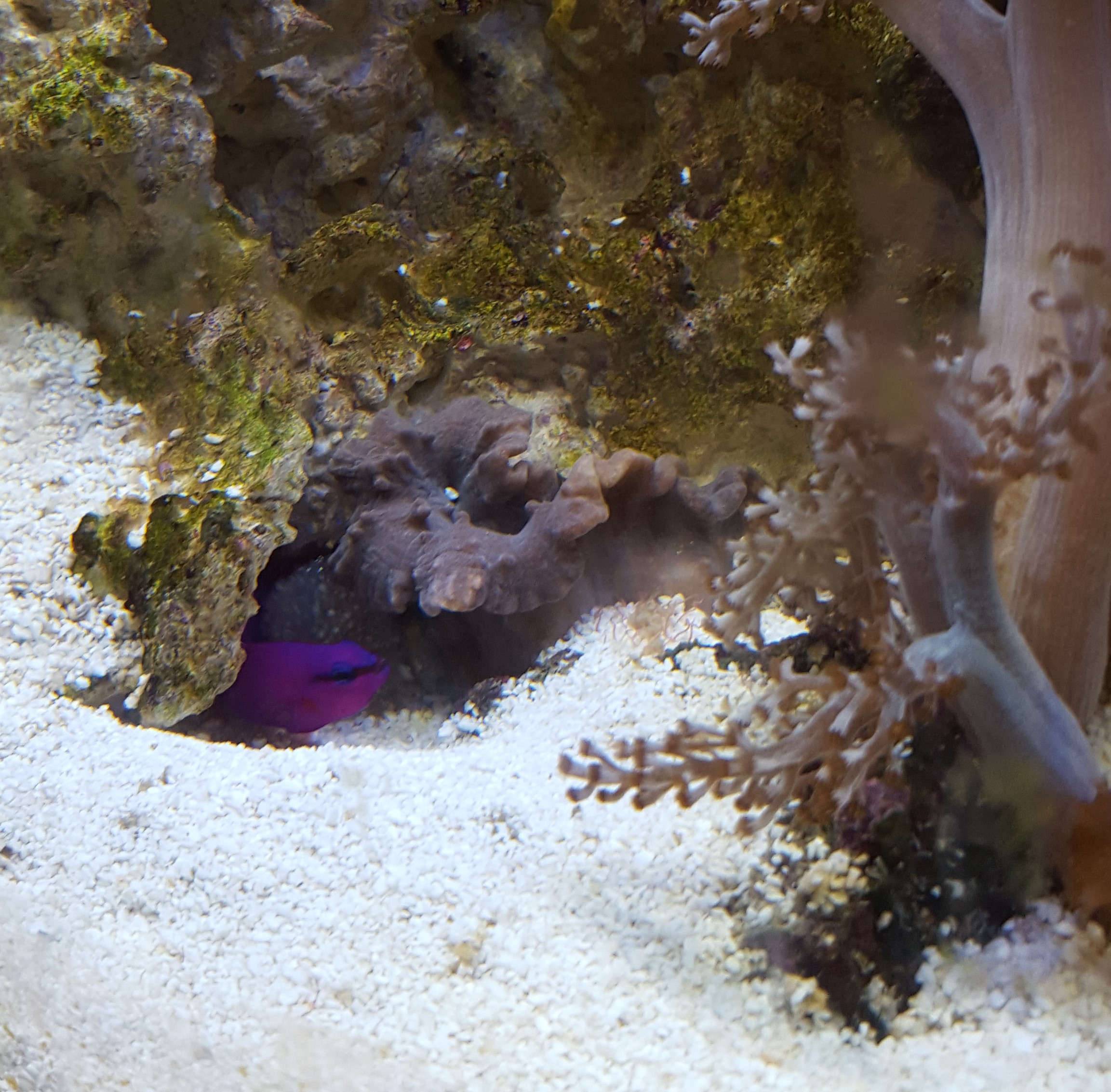Ansonsten gebe ich dem Becken aktuell viel Zeit. Korallen wurden nicht besetzt. Die Heliopora coerulea zeigt seit einiger Zeit ein paar Polypen. Weitere Korallen sind nicht gestorben. Aber ich müsste lügen, würde ich behaupten, dass ich ein gutes Wachstum habe.