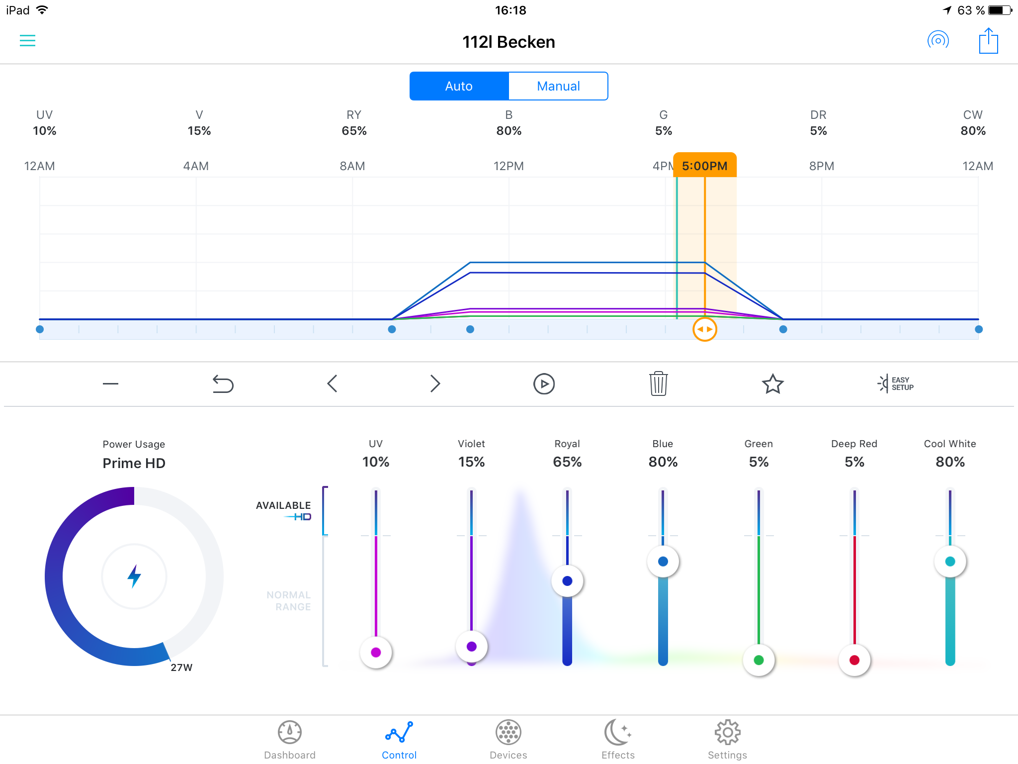 Im Forum findest du die empfohlenen Einstellungen für die AI. UV, violett und die beiden blauen Kanäle sind defintiv im Vergleich zu weiß zu srark bzw. zu hoch geregelt.