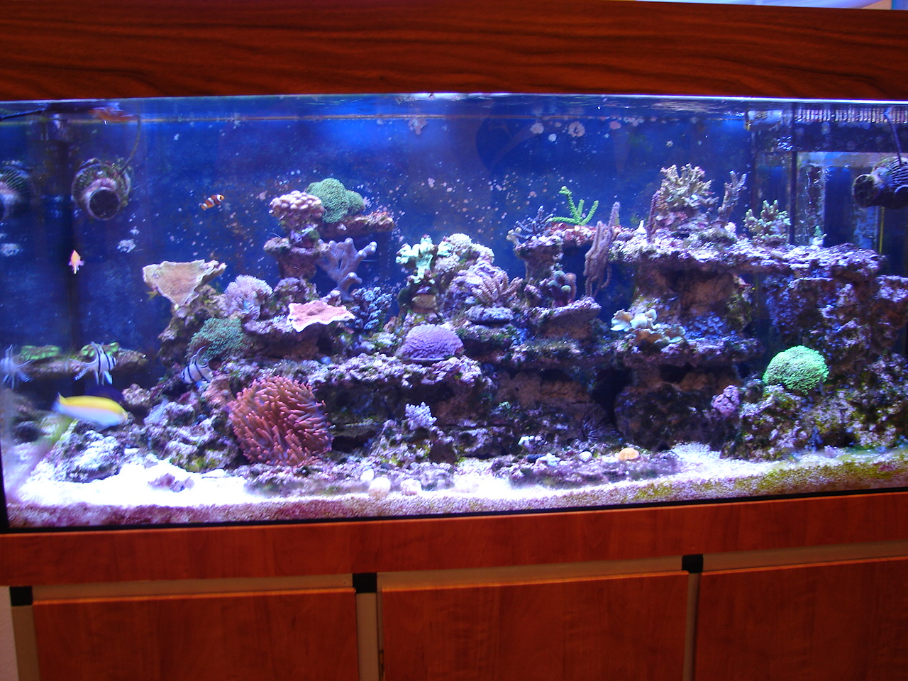 steht jetzt seit ca. 7 Monaten und ist als Mischbecken ( vorwiegend SPS, LPS - und einige Weichkorallen ) geplant. Ich werde sobald wie möglich