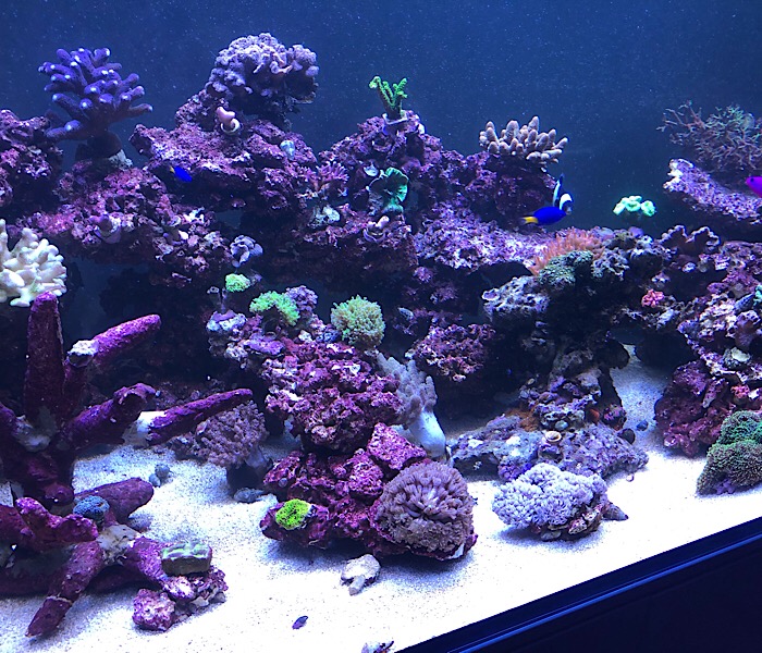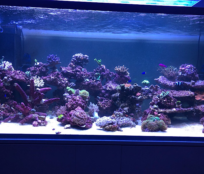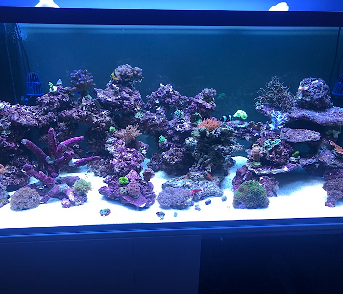 Kieselalgen kamen Tag4, darauf hin habe ich 35 Einsiedler, 15 Sandgrabende Schnecken und div andere Schnecken eingesetzt. Kieselalgen sind sehr stark reduziert worden, wird von Tag zu Tag weniger. Erste Korallen und Fische habe ich von einem meiner 100l liter Becken eingesetzt (Tag3 ), welche auch gut da stehen.